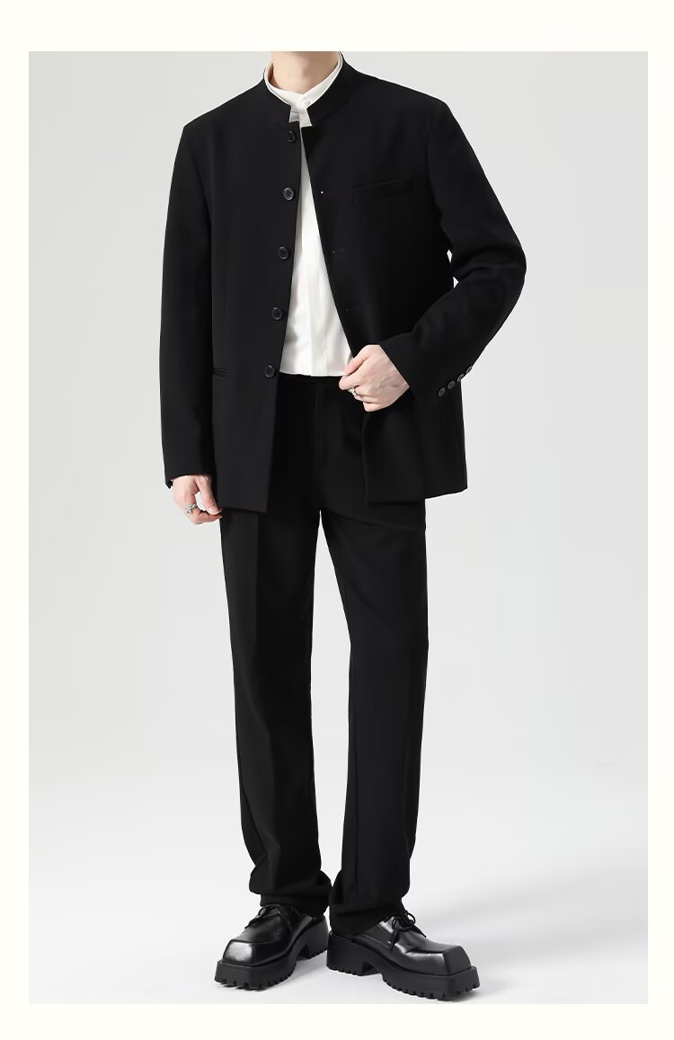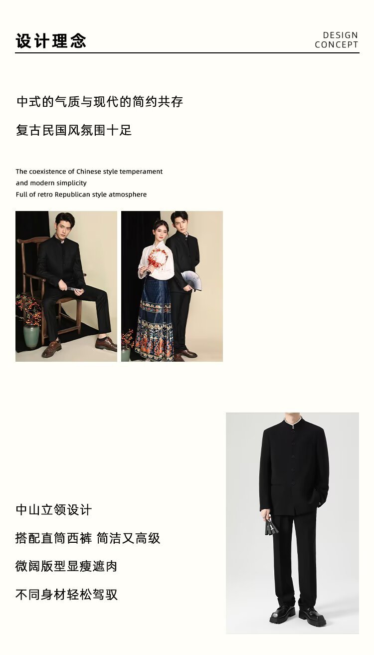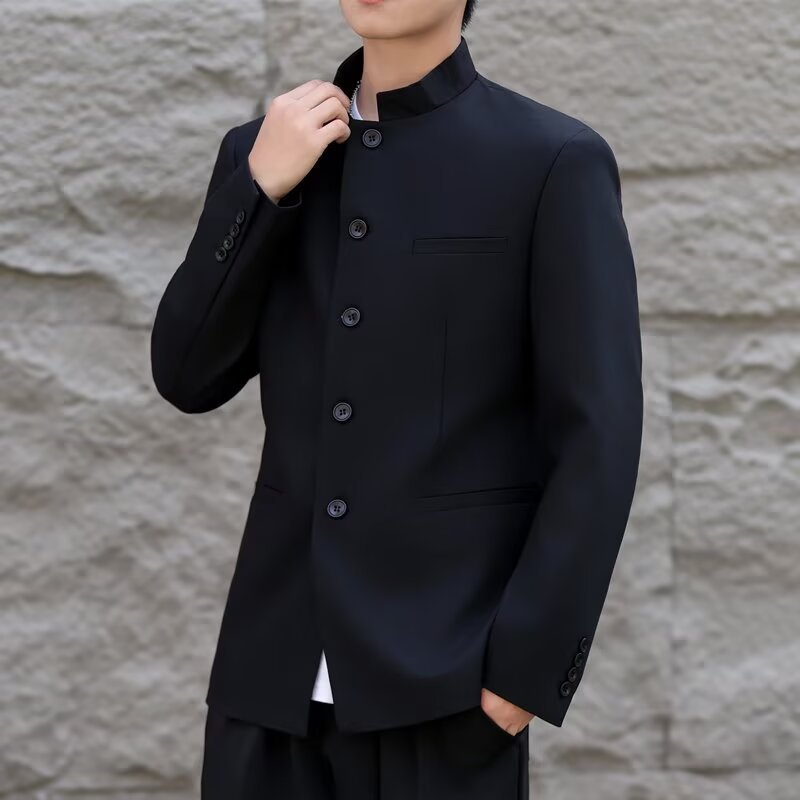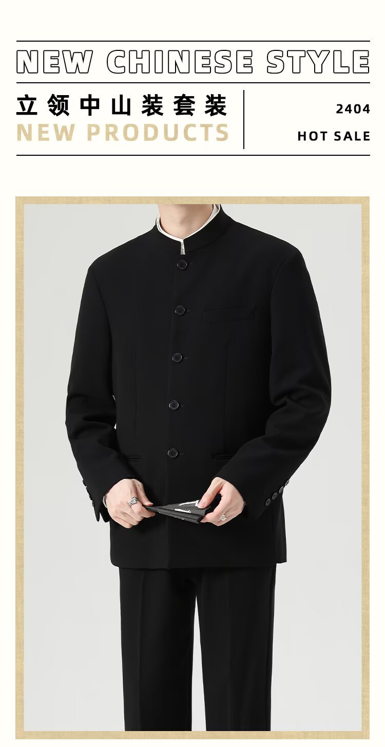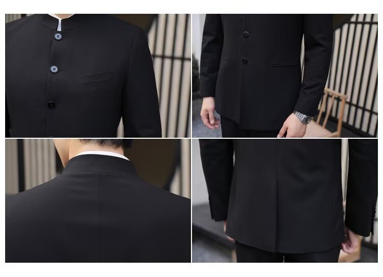 新中国式中山装男痞帅スーツ黒立襟スーツコート高級感結婚式婚約着スーツ