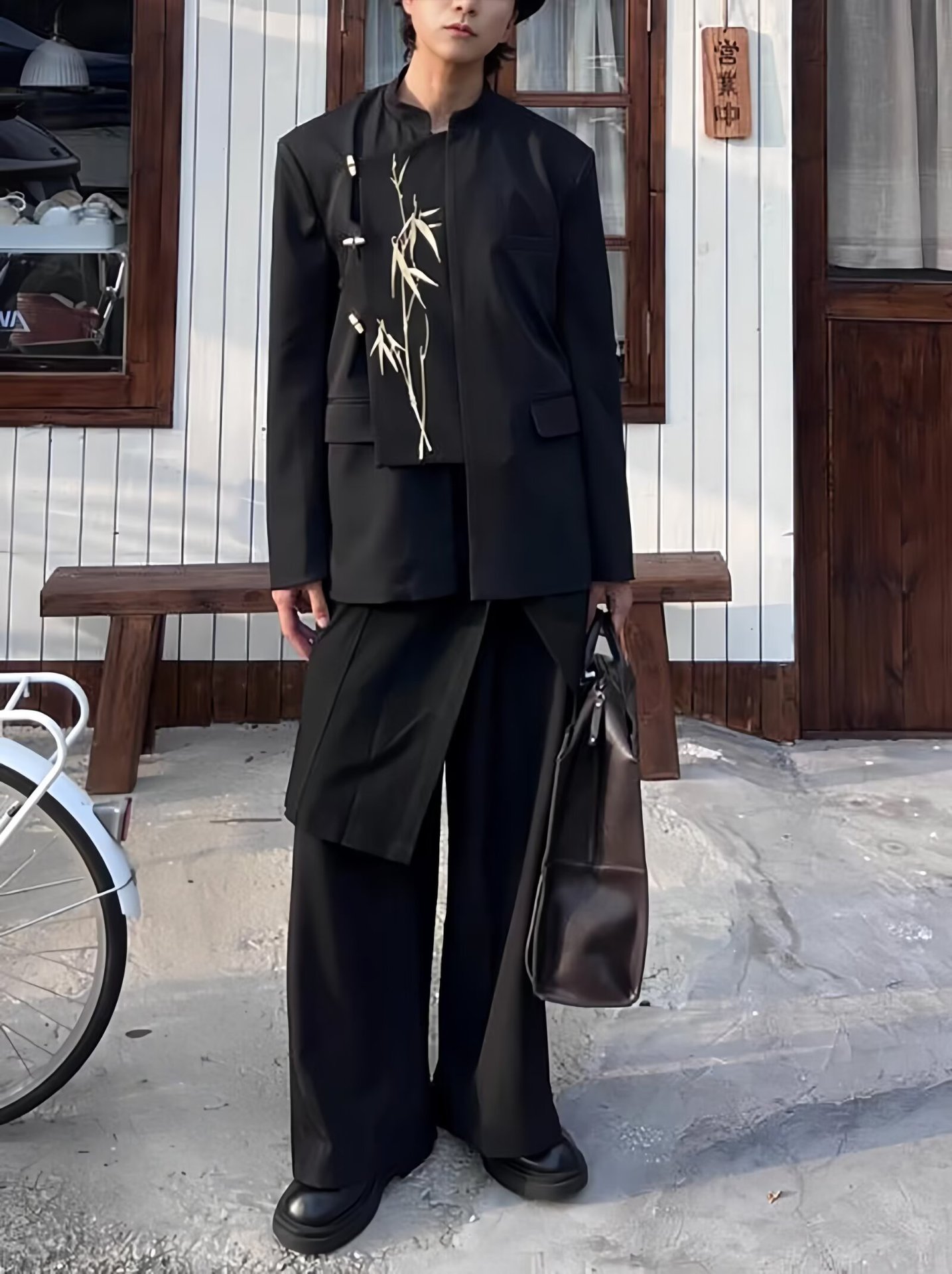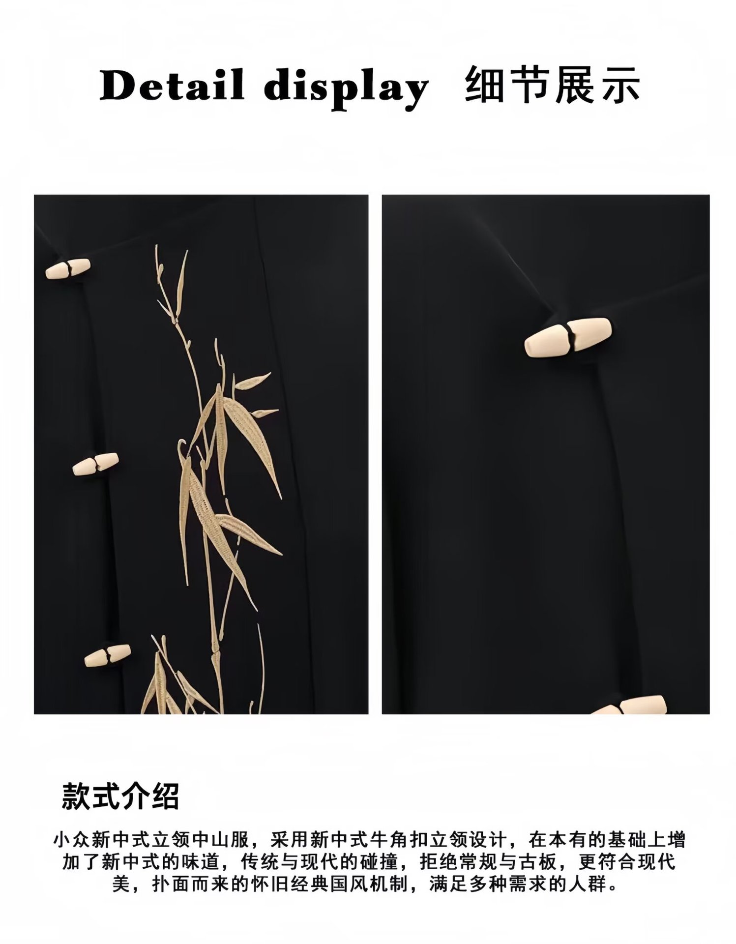 中国風唐装男性スーツスーツ民国風職業スーツ中国式高級黒色立襟中山服コート
