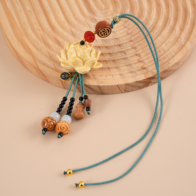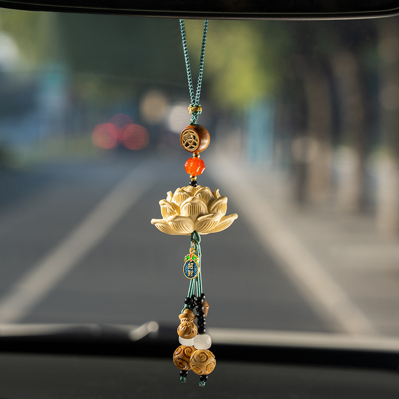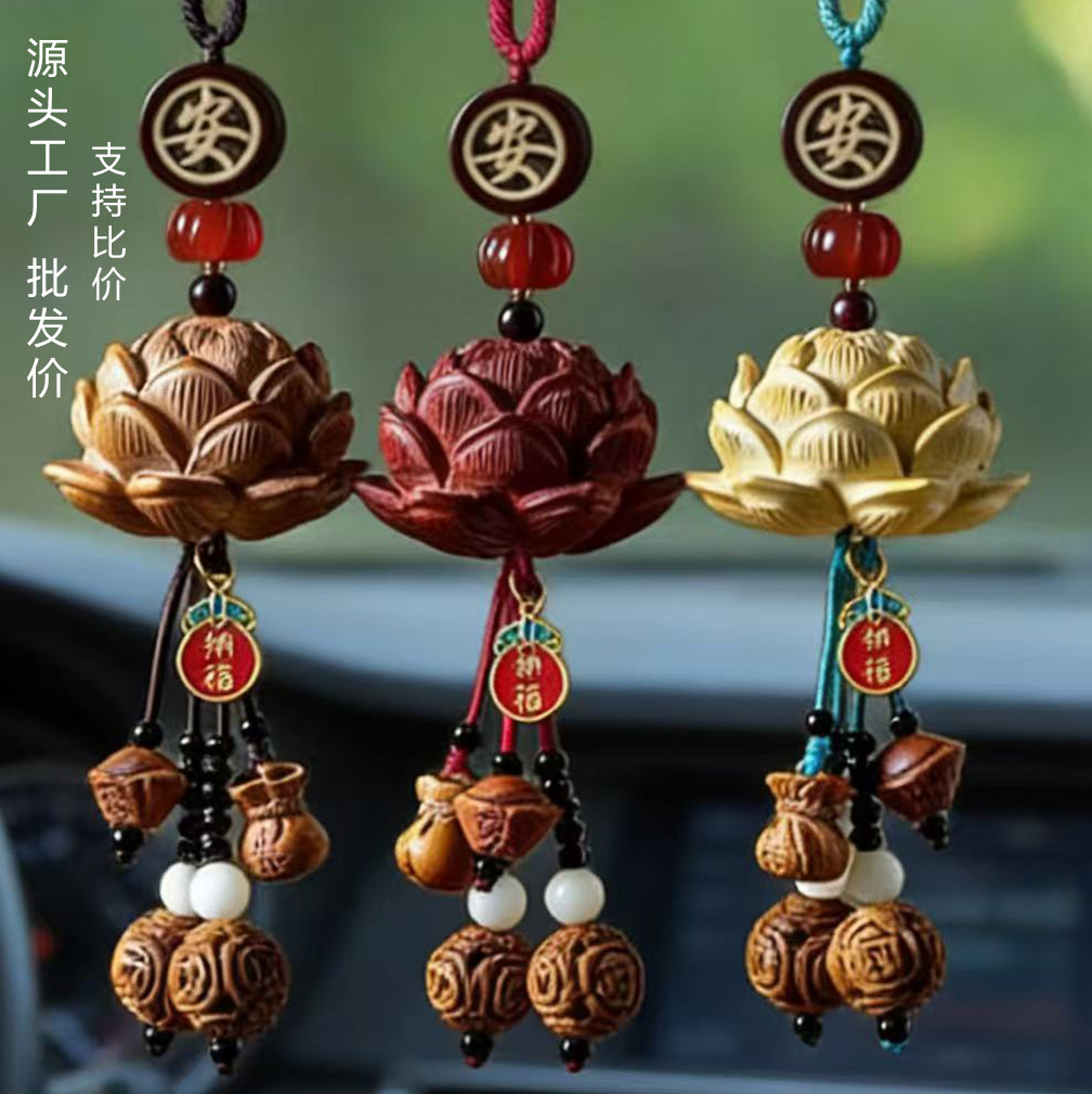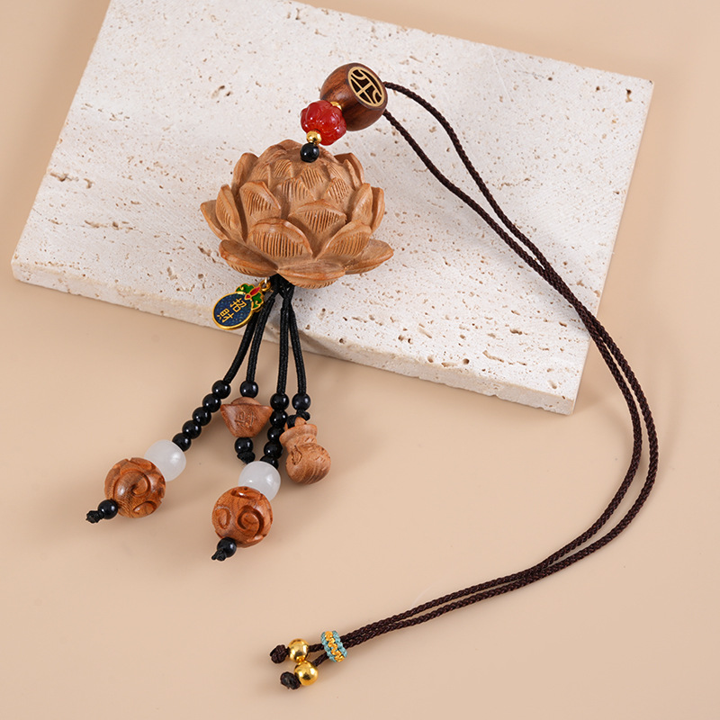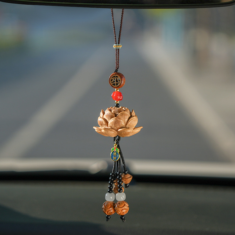 2025 新ピーチウッドロータスカーペンダントクリエイティブナショナルスタイルハイギア車内安全ペンダントカーペンダント