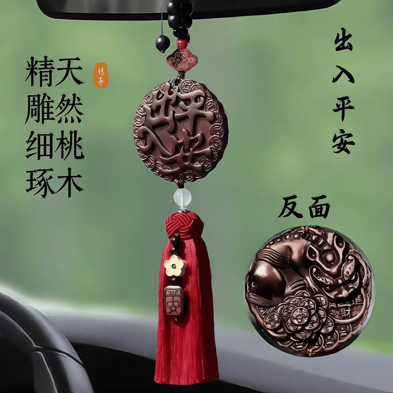 桃木汽车挂件出入平安双面高档男女士车载好物装饰品貔貅吊坠礼物