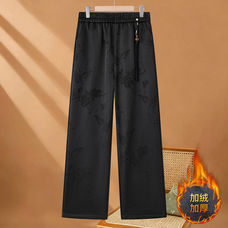 洋气提花新中式国风裤子女裤冬季加绒保暖长裤松紧高腰显瘦直筒裤