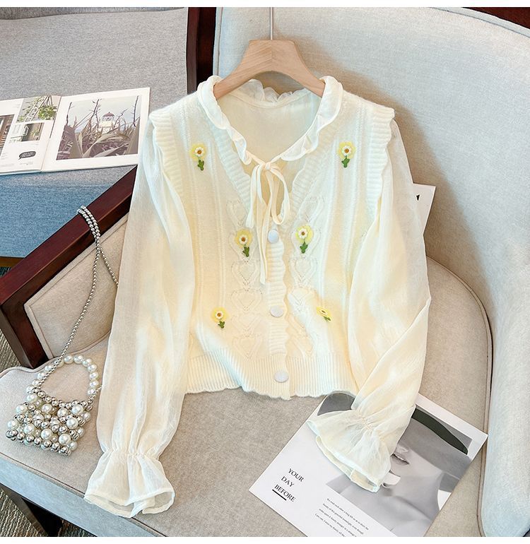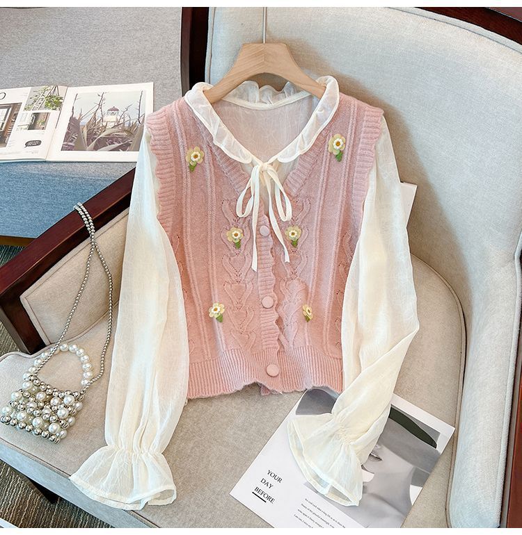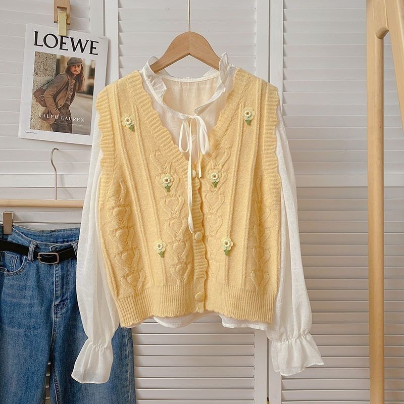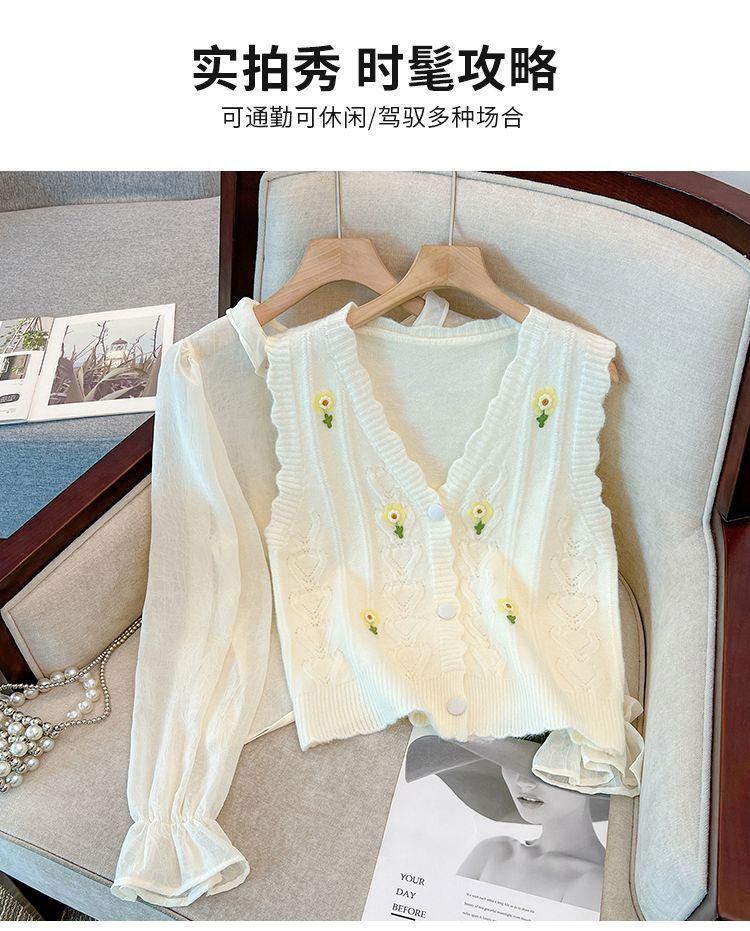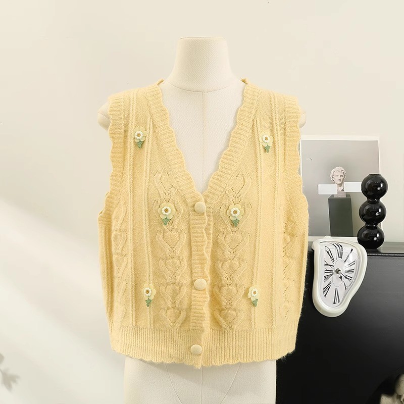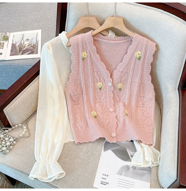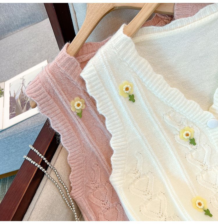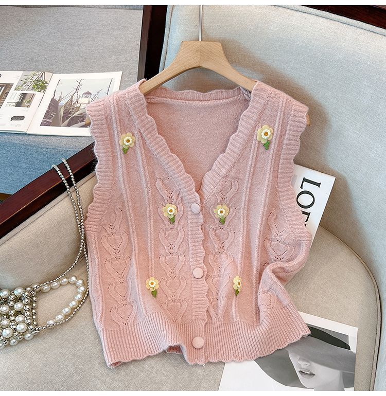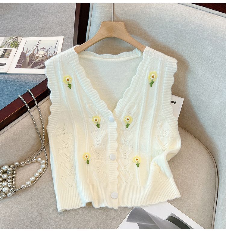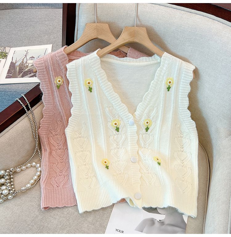 花刺繍ニットベストカーディガン女性のための春と秋の新しいスタイルルーズスタイルアウターノースリーブベストセーターベストトレンディ