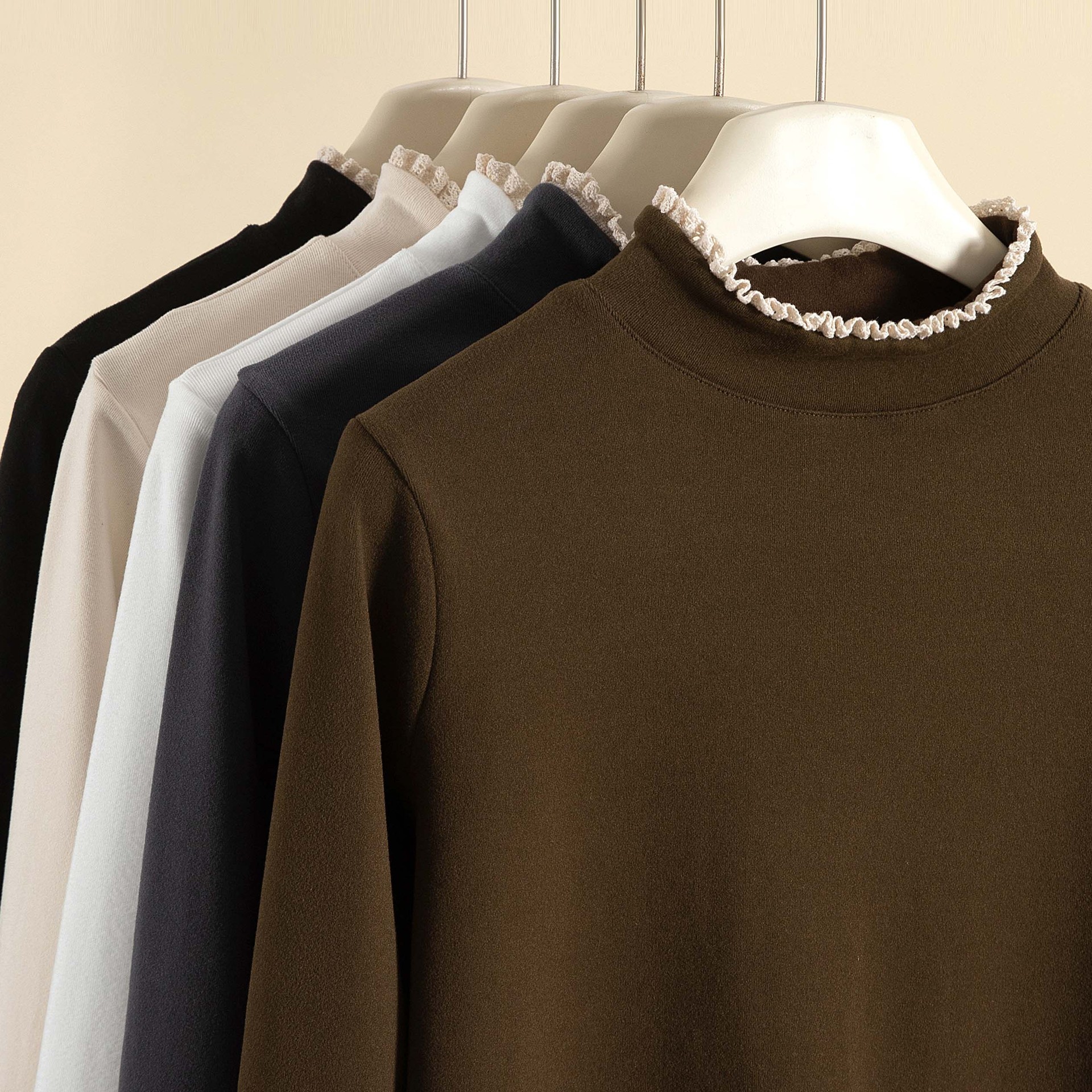 一体绒加厚蕾丝保暖衣2025冬季新款女装纯色领修身针织打底毛衣