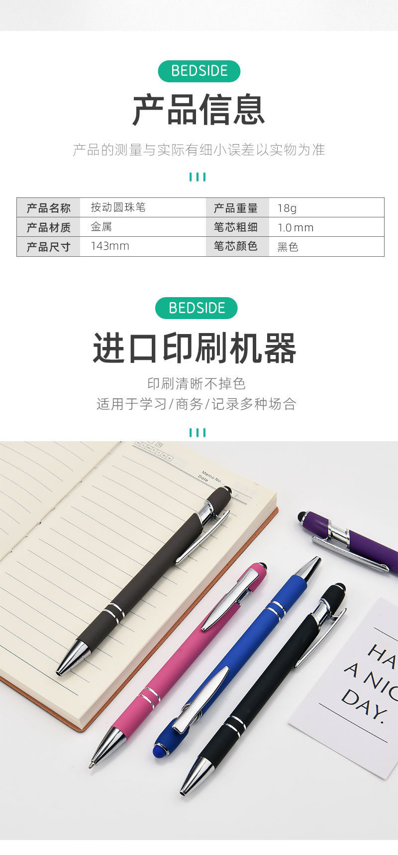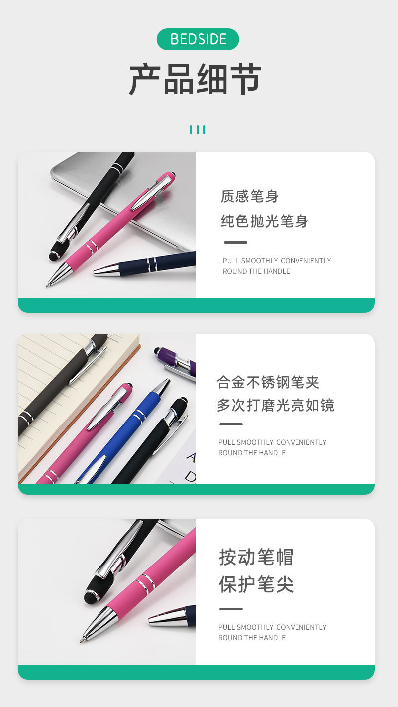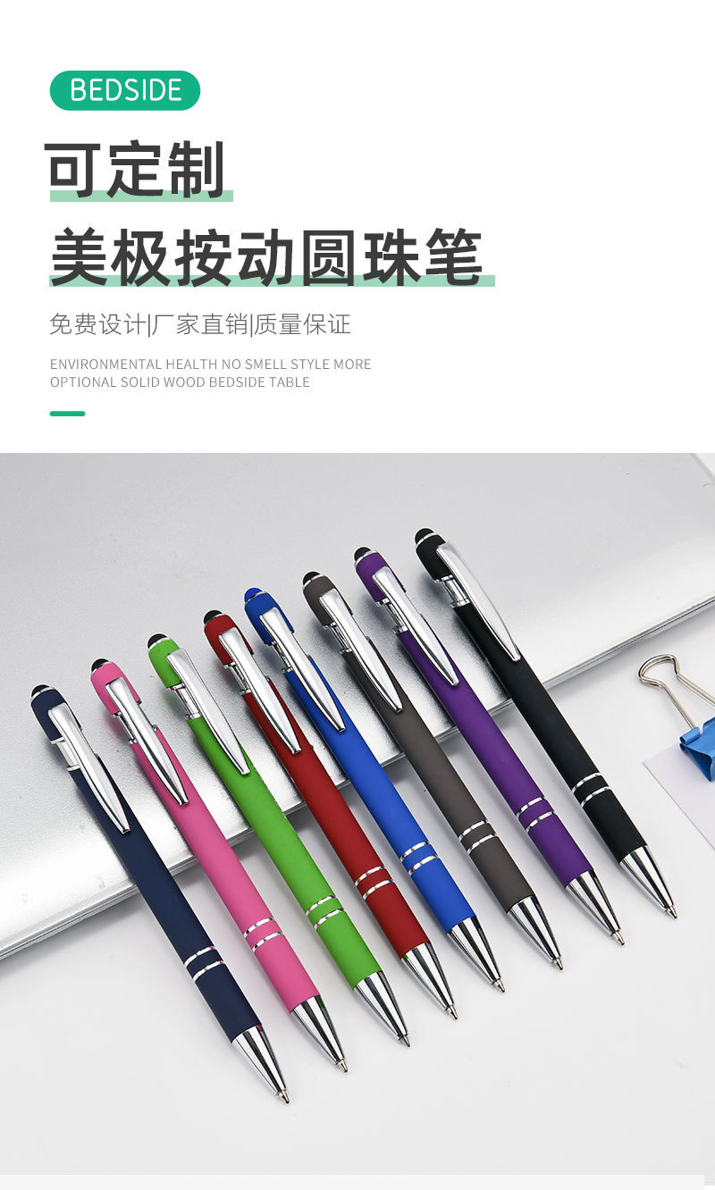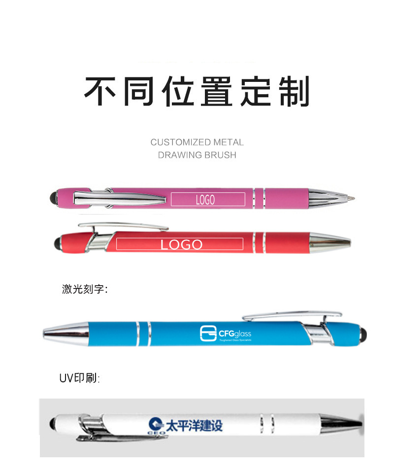 金属プッシュペンアルミペン美極ペン静電容量タッチボールペン手書きタッチペン印刷logoギフトペン