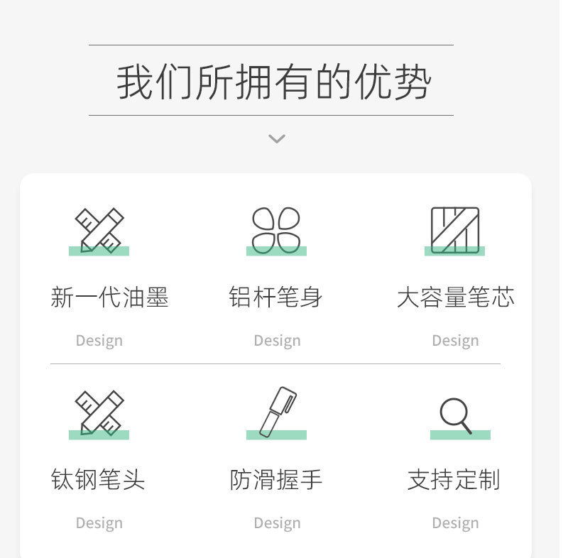 カスタムペンとロゴ押し白ペンモランディ色黒芯st頭速乾ブラシ問題中性ペン押し黒芯