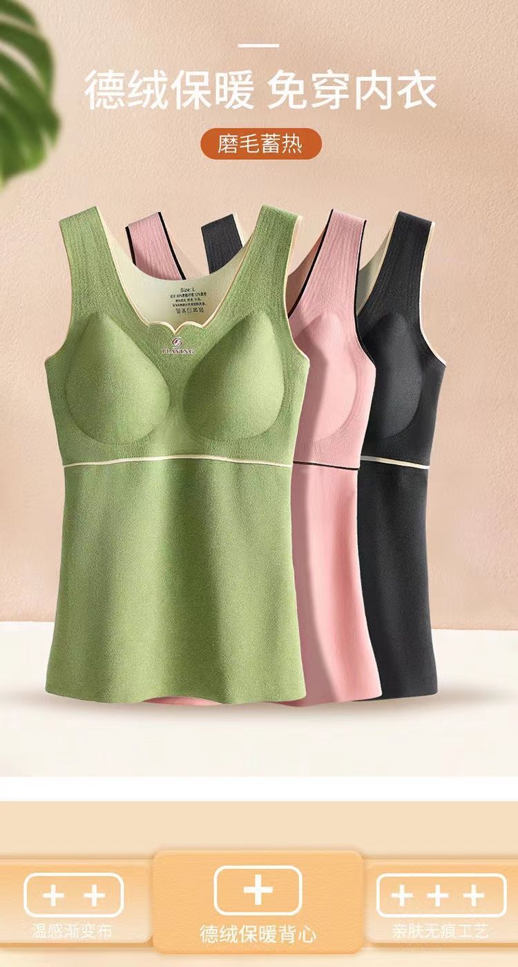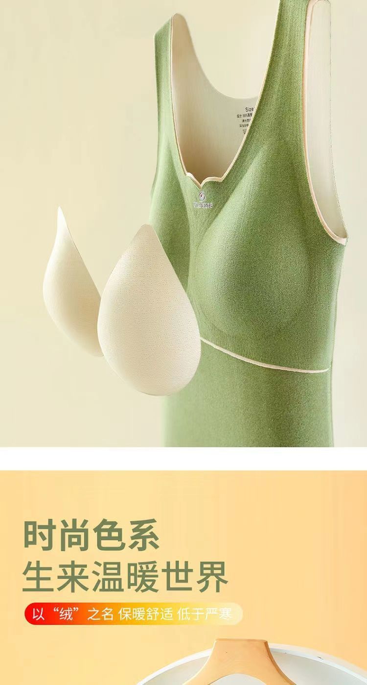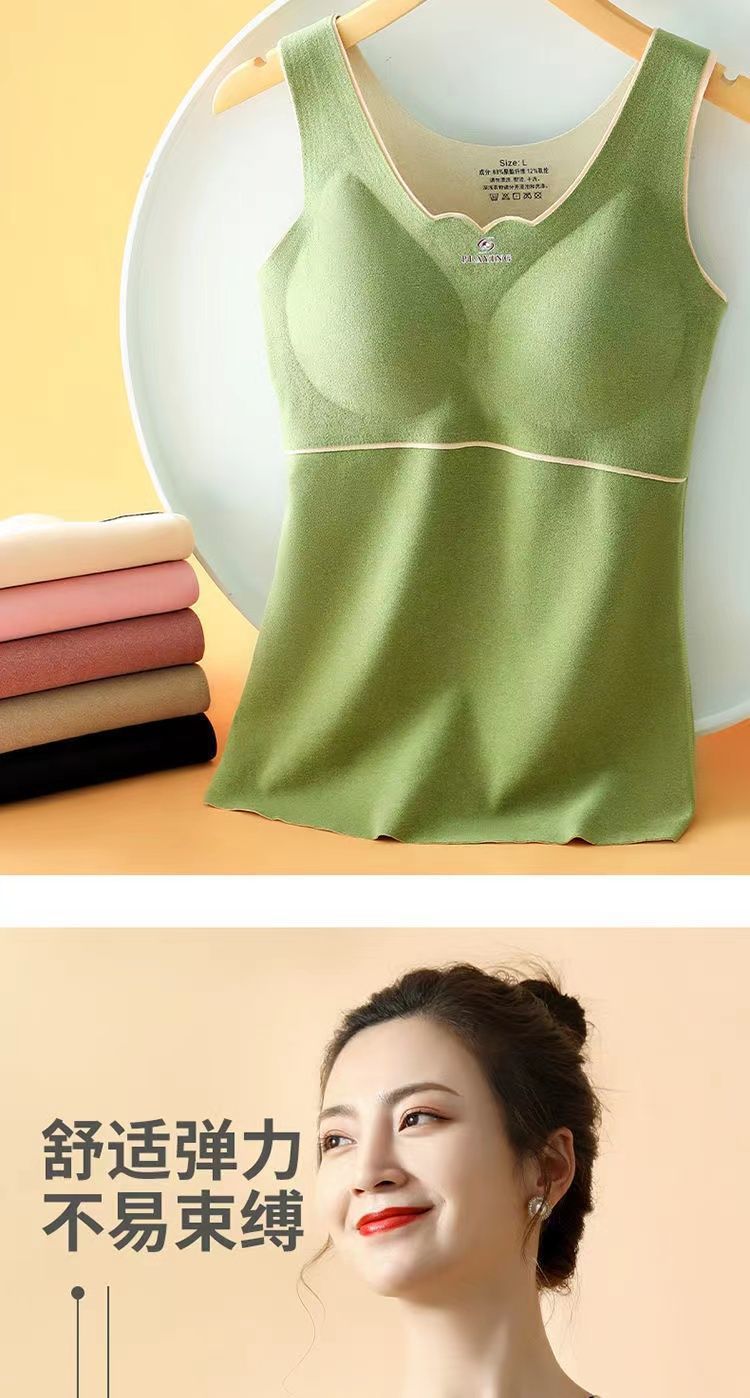 3893秋冬無痕発熱徳絨毛保温ベスト女性胸パッド付き一体式ベルベット保温下着女性