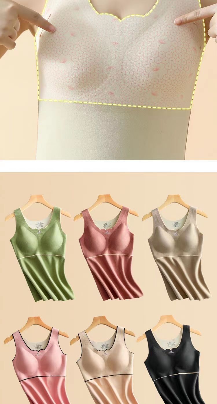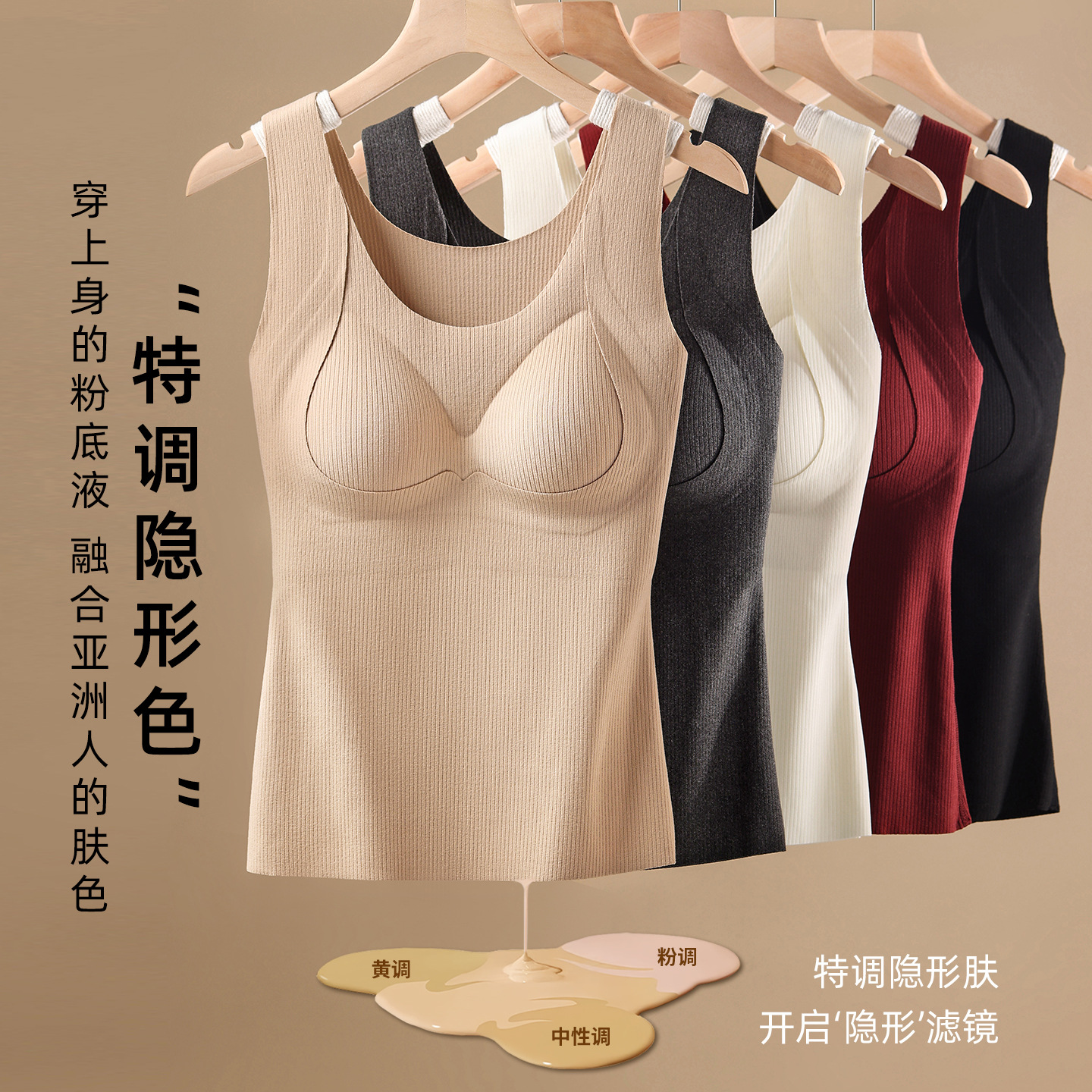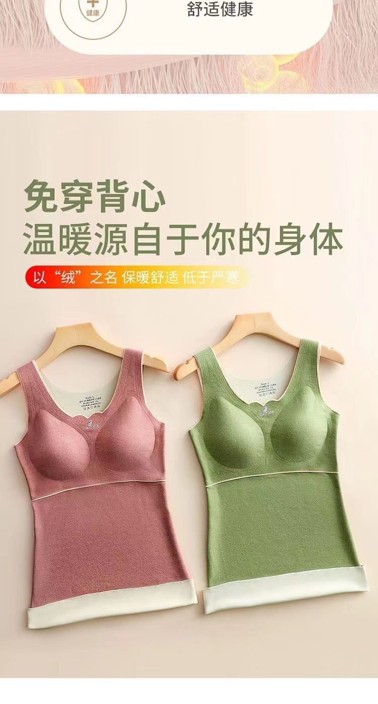 3893秋冬無痕発熱徳絨毛保温ベスト女性胸パッド付き一体式ベルベット保温下着女性