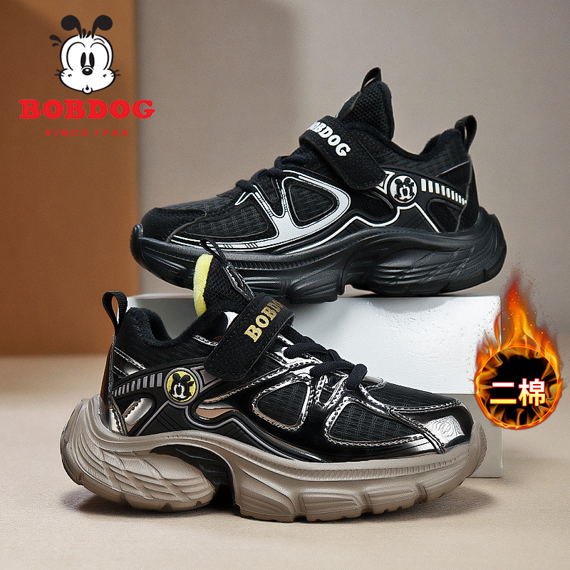 巴布豆男童鞋子加绒二棉保暖2025秋冬新款潮流防滑百搭儿童运动鞋