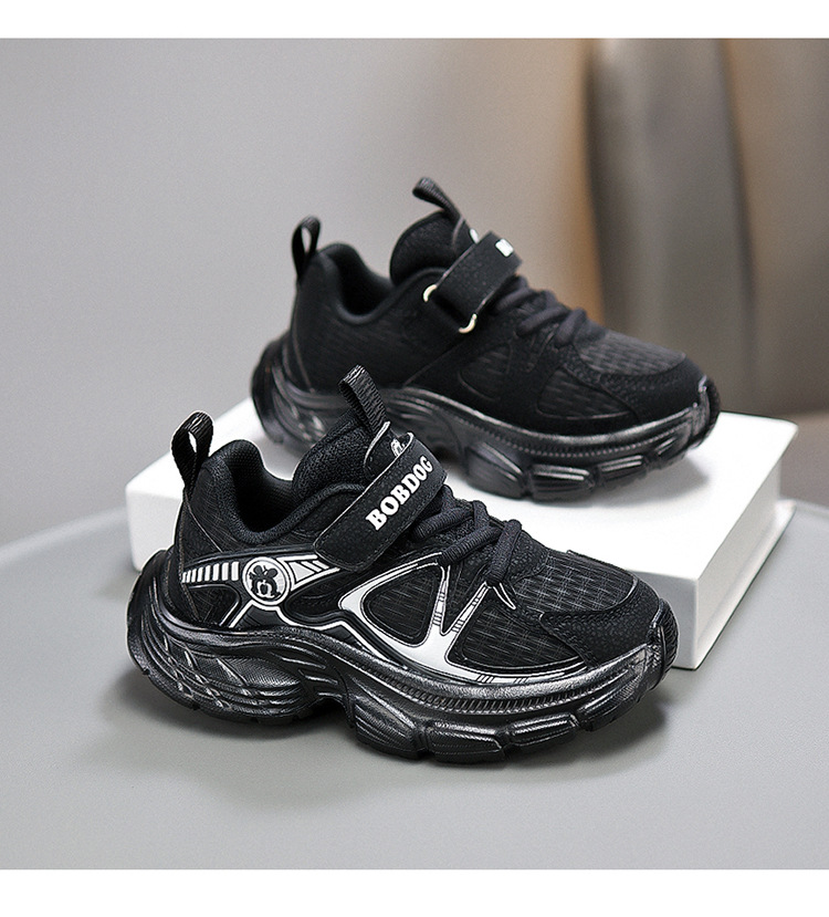 巴布豆男童靴2025春の新型皮面防水中の子供児童運動靴ネットランニング靴