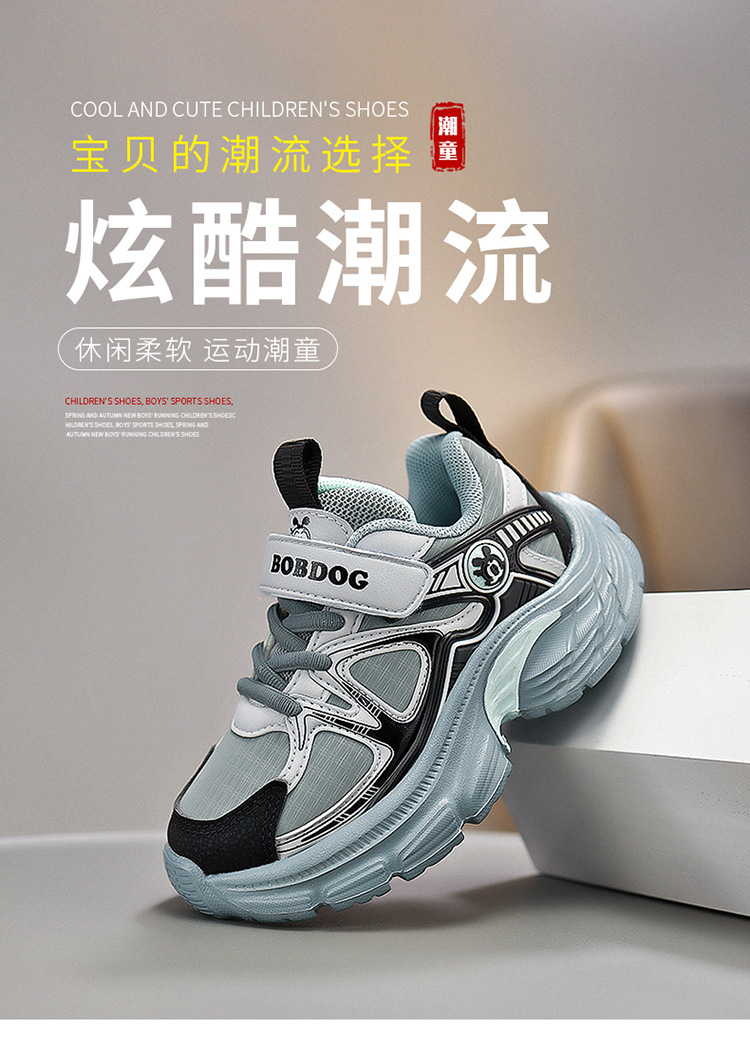 巴布豆男童鞋子2025秋季新款儿童透气防滑篮球鞋中大童时尚运动鞋