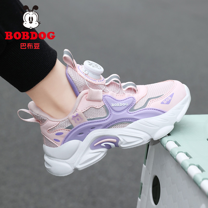 巴布豆童靴少女スポーツシューズ2025春の新型ネット通気回転ボタン女子児童靴