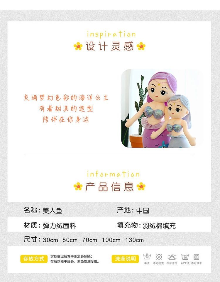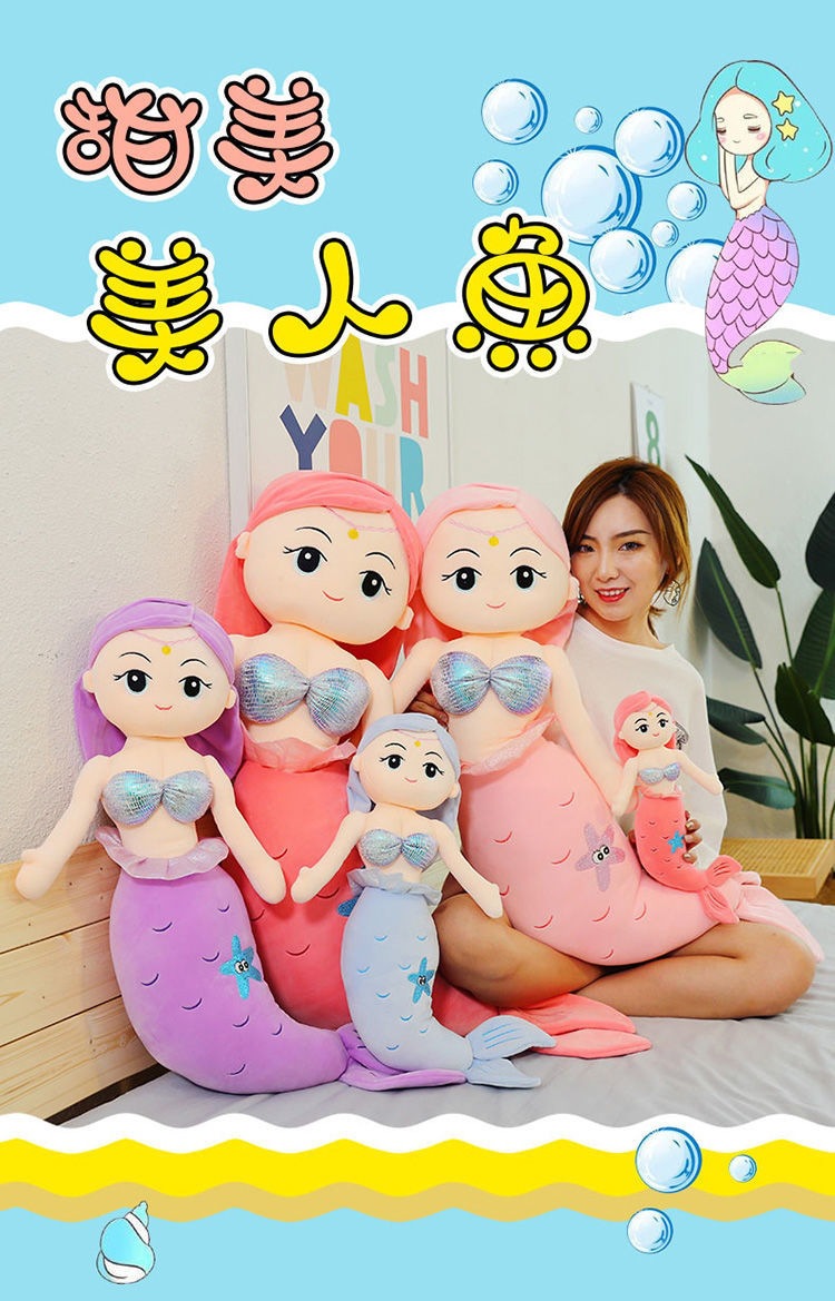 创意可爱美人鱼公主公仔大号布娃娃毛绒玩具女孩玩偶儿童礼物批发