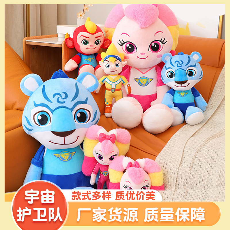 宇宙護衛隊のぬいぐるみネットの赤い子供が枕を抱いて子供の誕生日プレゼントをプレゼントします。