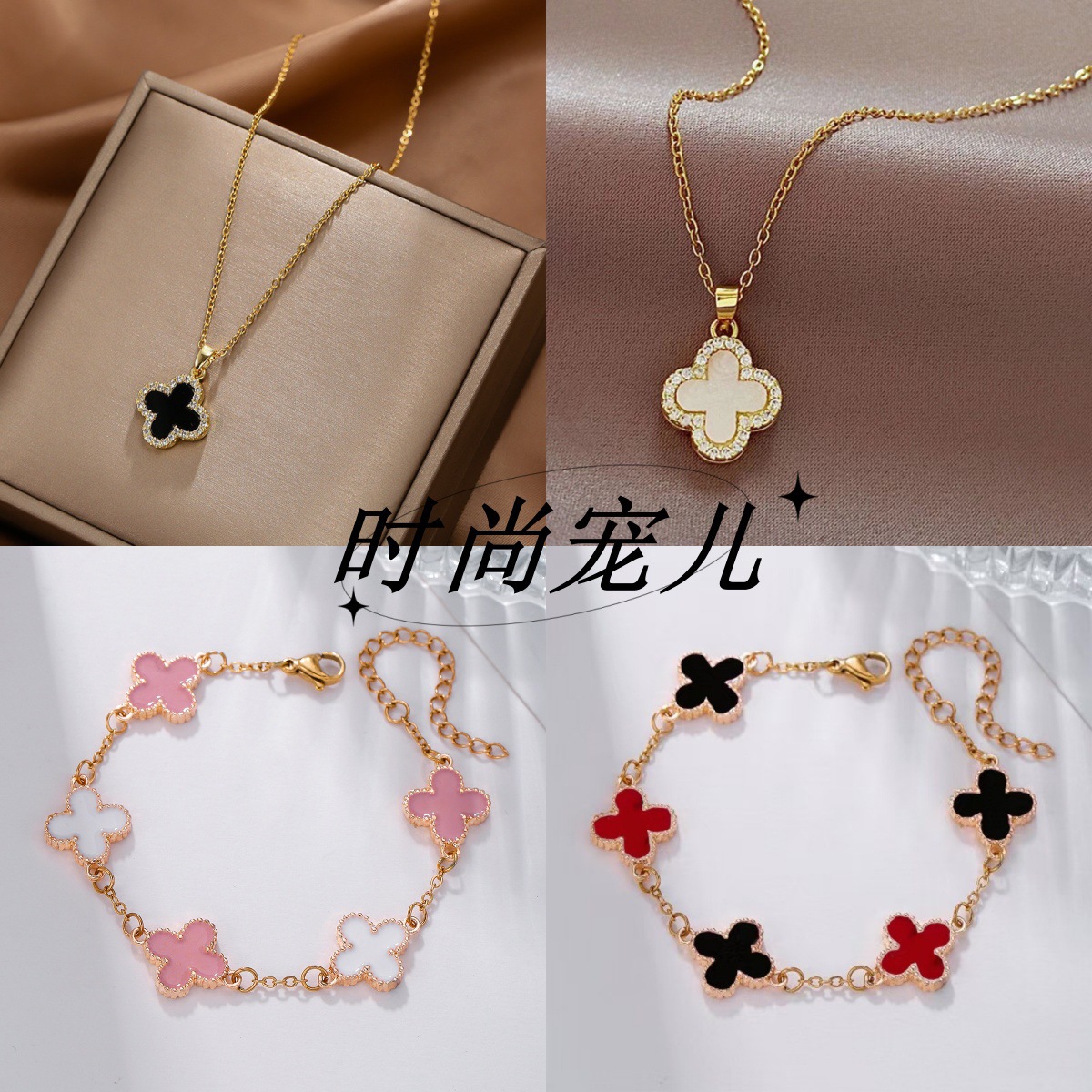 跨境虾皮款四叶草手链女日韩时候简约款五花好运百搭手饰