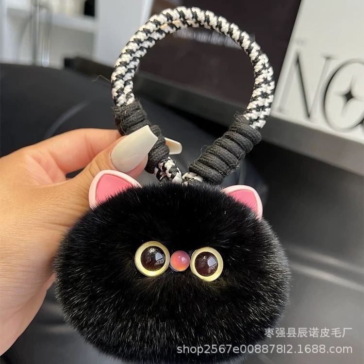 創意的で可愛い毛の石炭のボールは自動車のキーホルダーのカバンを掛けます。