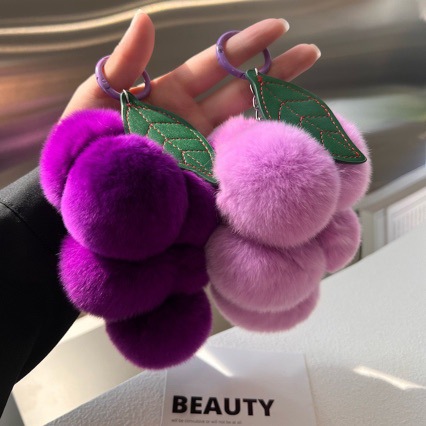 超正的紫色系~真獭兔毛葡萄汽车钥匙扣挂件ins可爱毛绒球包包挂饰