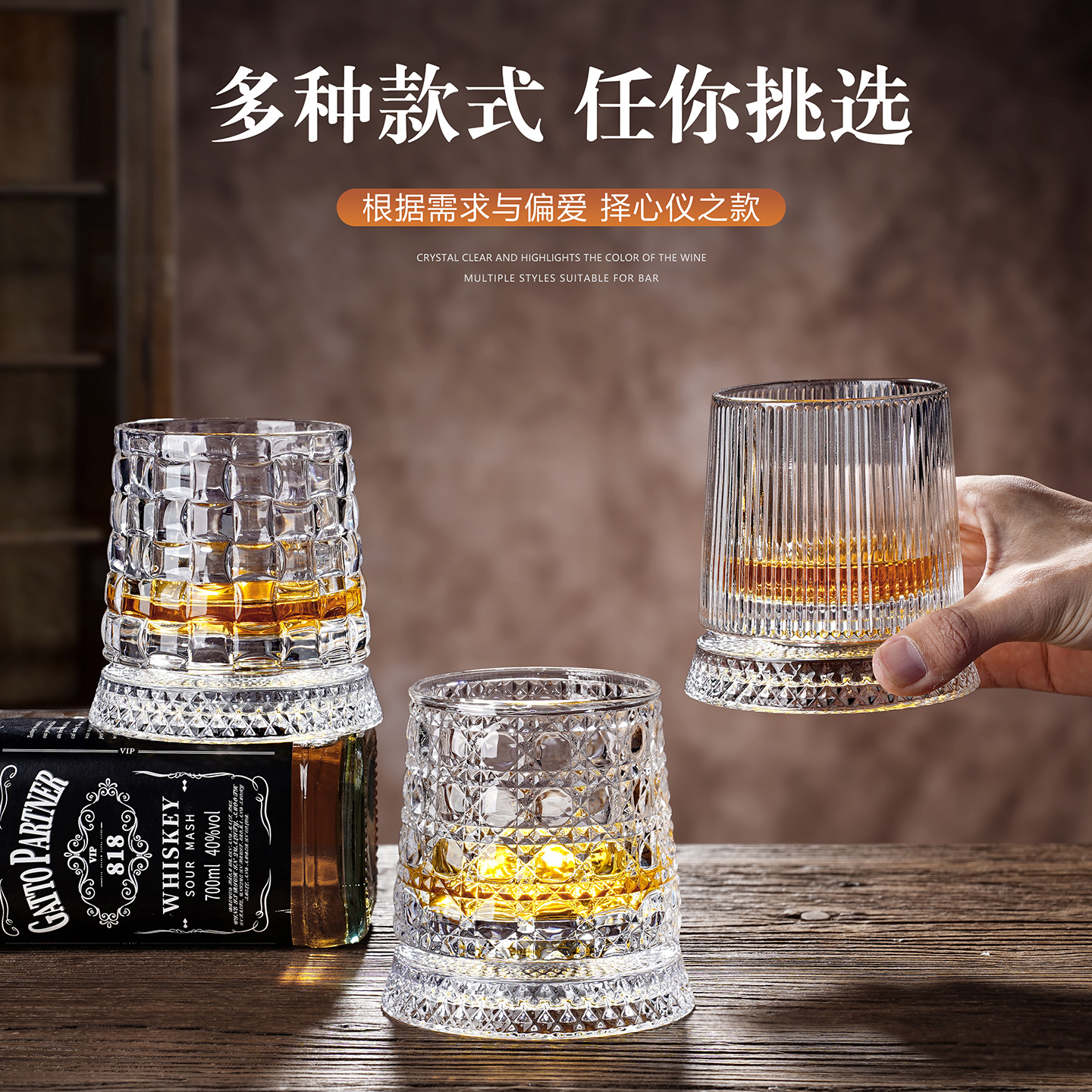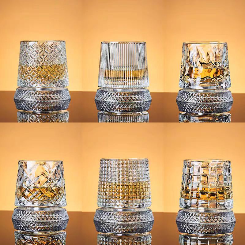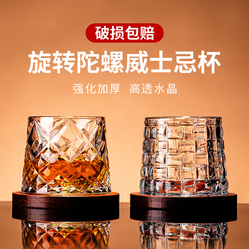 威士忌酒杯洋酒杯带底座解压杯玻璃杯套装啤酒杯高级感转转杯家用