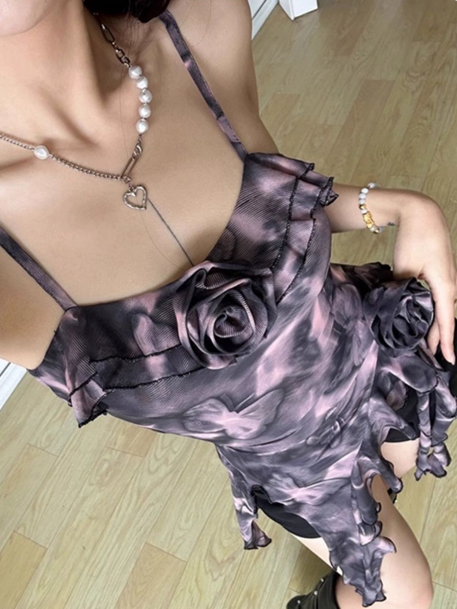 ファッションのデザイン感はハスの葉の縁のキャミソールを染めます。