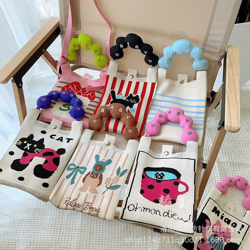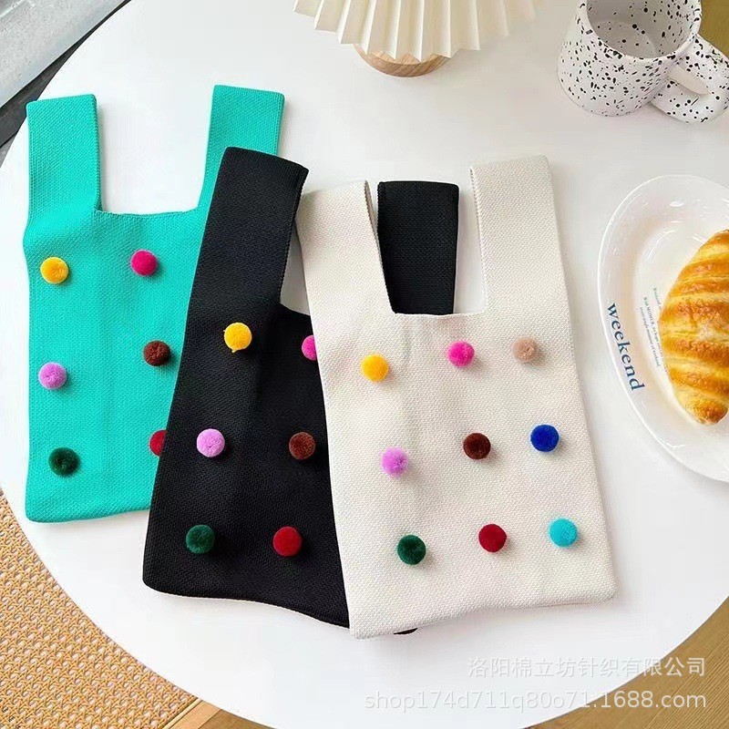 日韓のかわいいカラーの毛玉のニットのハンドバッグの女性の百合のファッションのトートバッグの手首のカバンのお土産のカバン