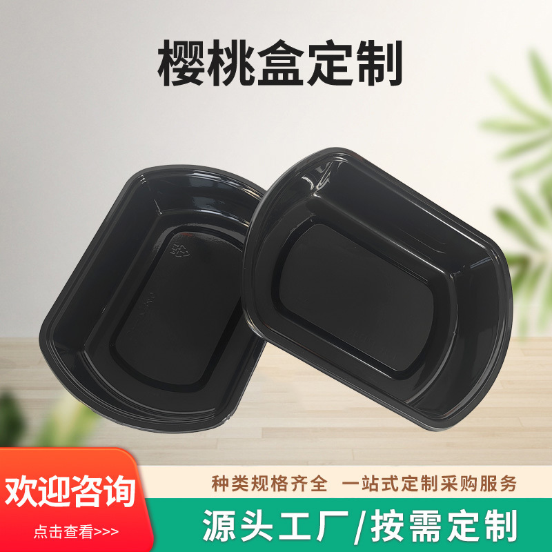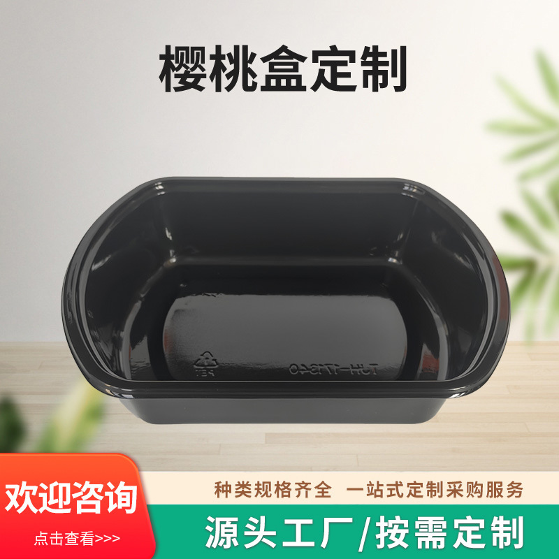 使い捨てチェリーボックス長方形黒肥厚フレッシュフルーツボックスペットプラスチックフルーツ包装フルーツカット野菜と果物ボックス