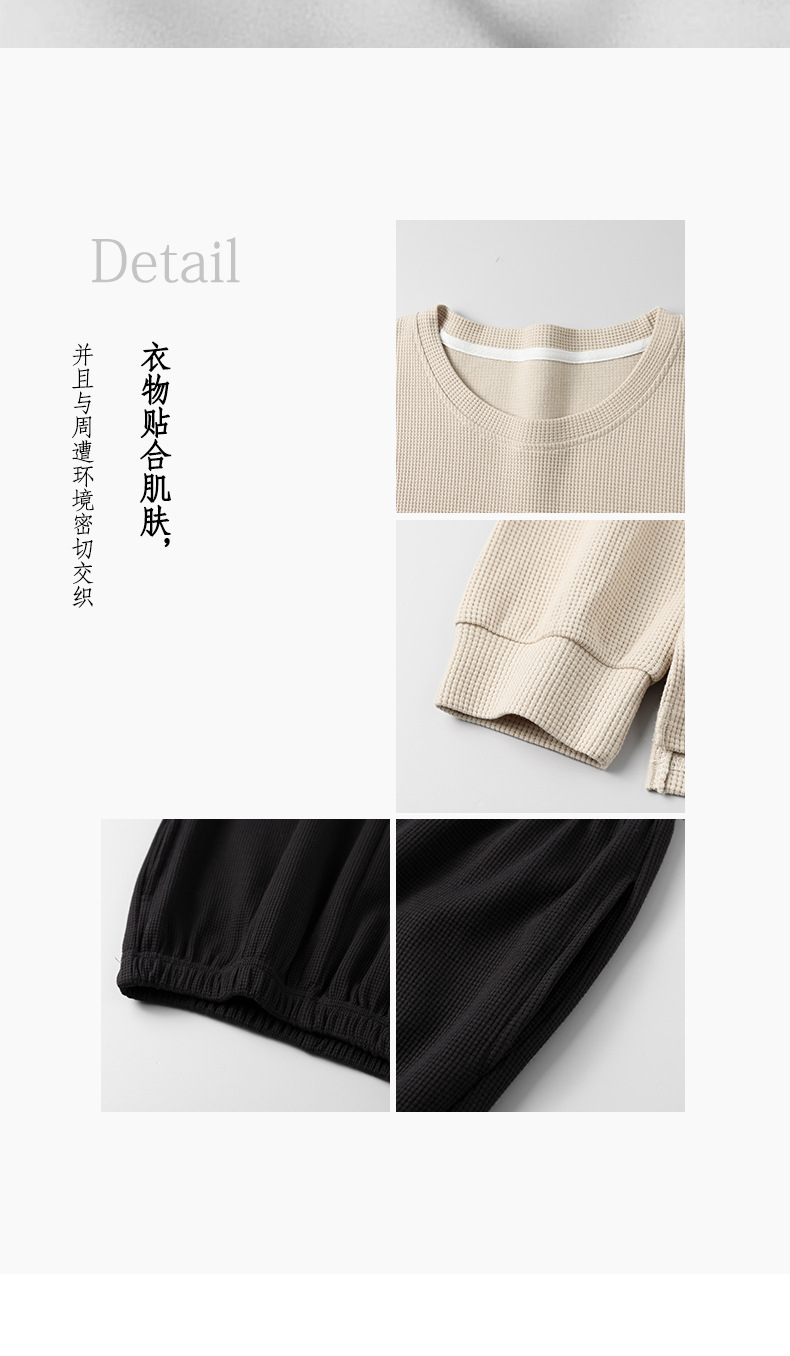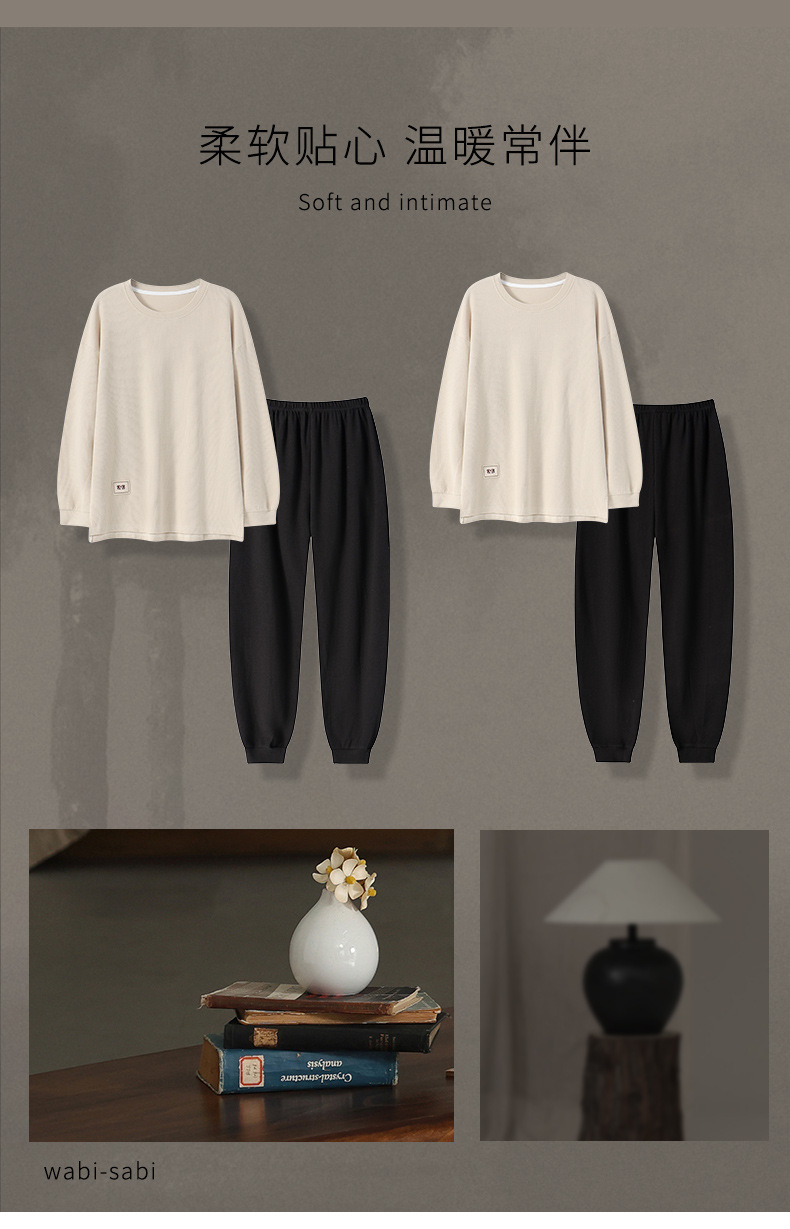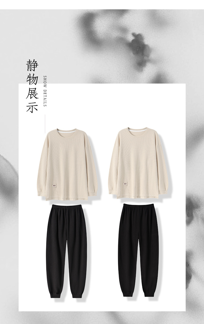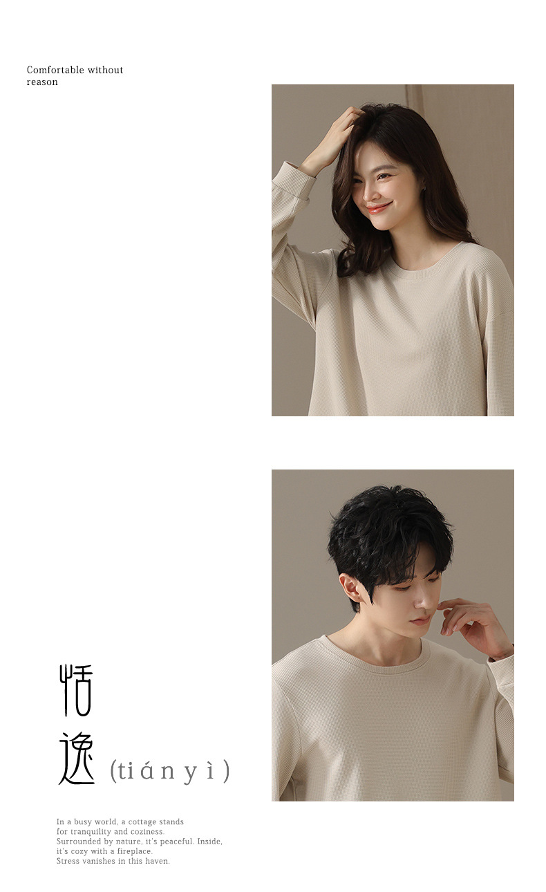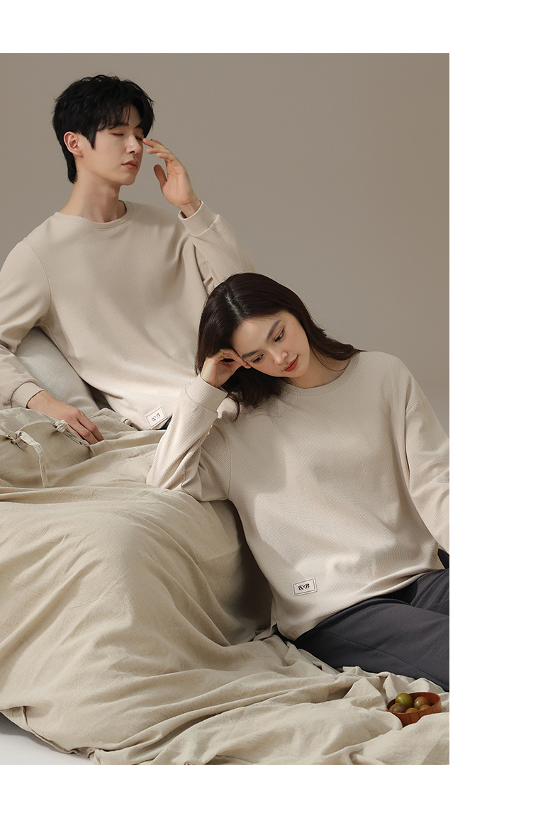 カップルのパジャマ春秋の純綿長袖のワッフルの新しい丸首の頭の綿の家の服は外にスーツを着ることができます。