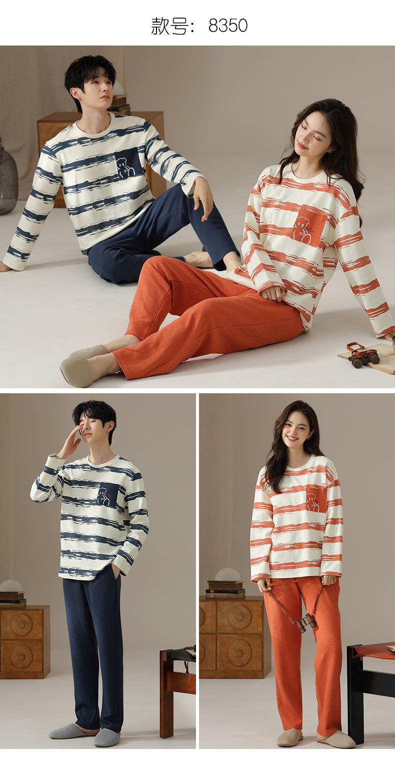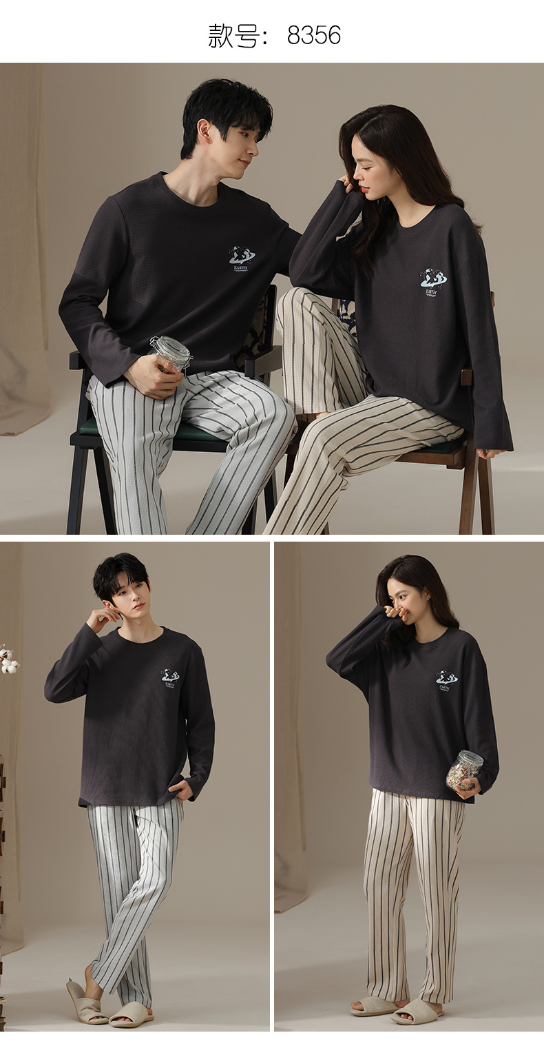 棉拉架春秋季情侣睡衣长袖一男一女新款翻领开衫纯棉家居服套装