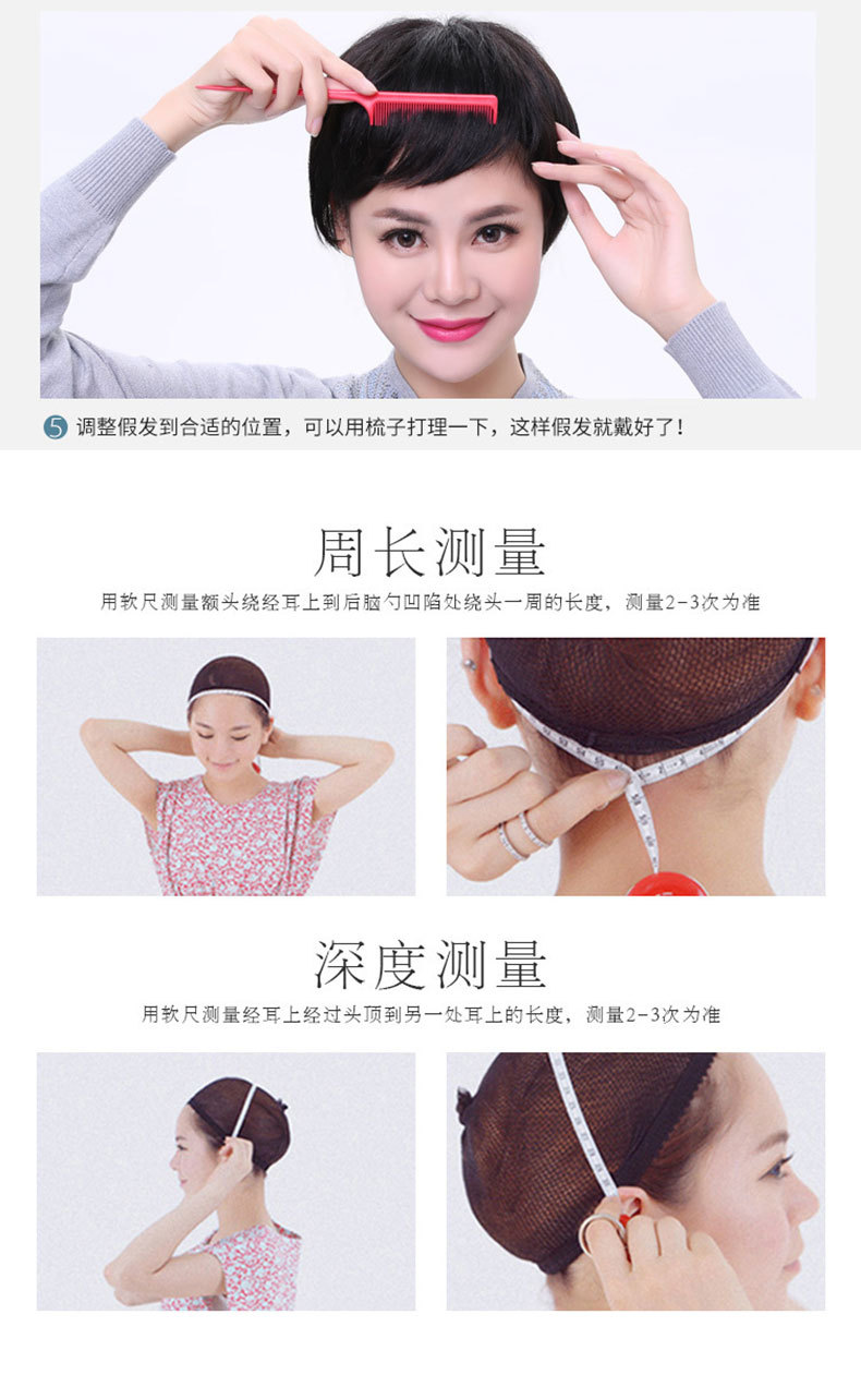 かつら真髪全人毛短髪中高年全頭カバー女性ママモデル自然かつらセット現物卸売り