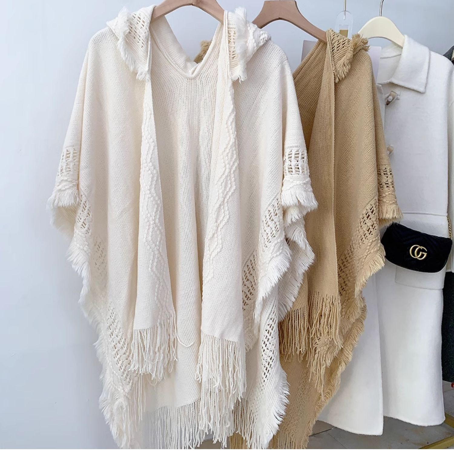 米白色连帽披肩女民族风外搭2025年新款斗篷云南西藏旅游穿搭批发