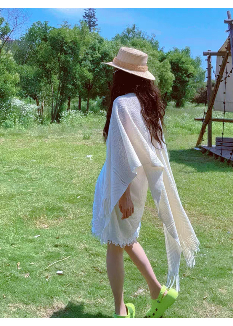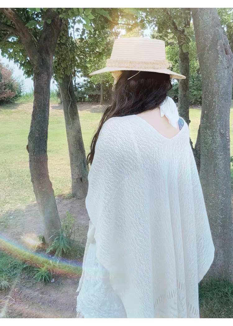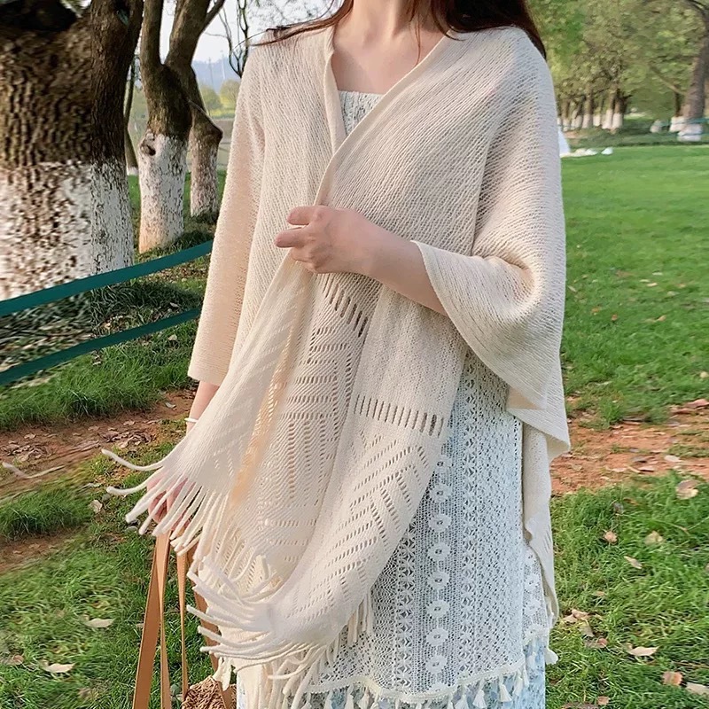 2025 ロングショール女性の春と夏のニット中空カーディガンチャイナ日焼け防止マントタッセルスカーフ卸売