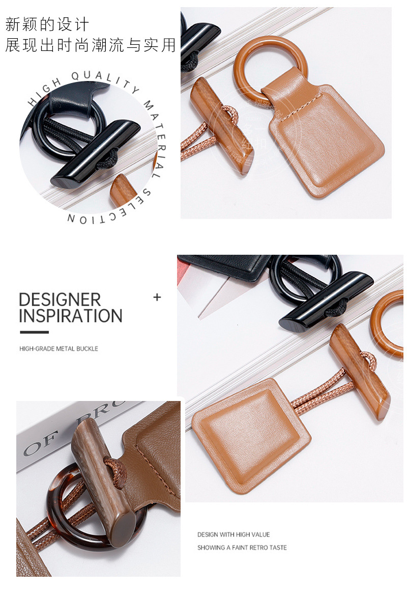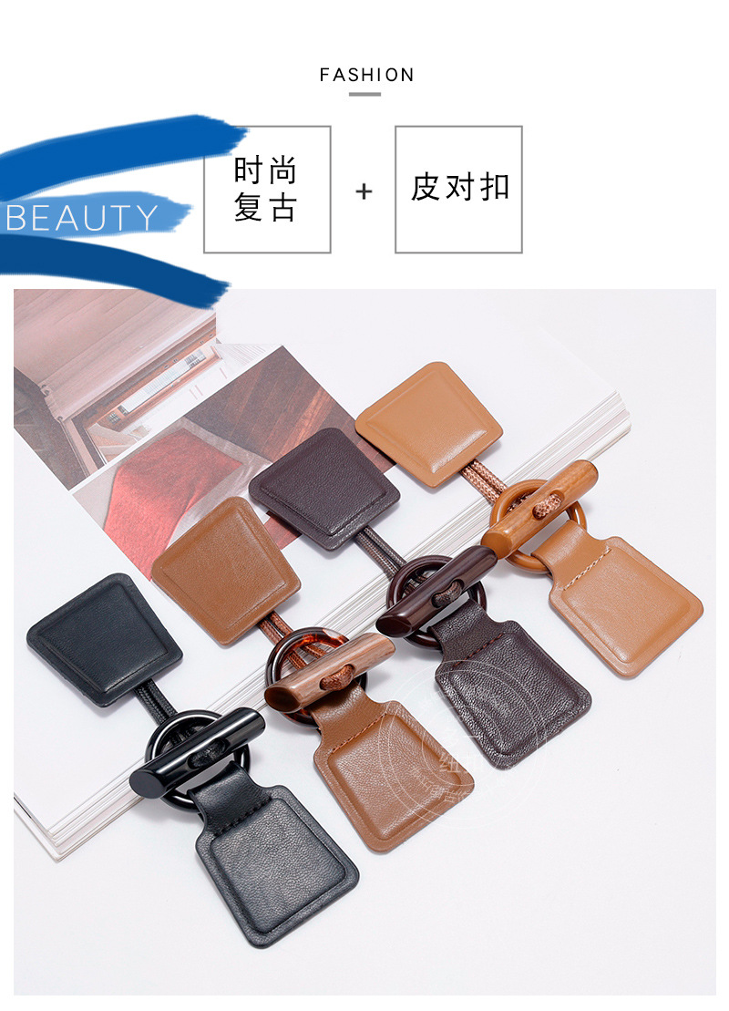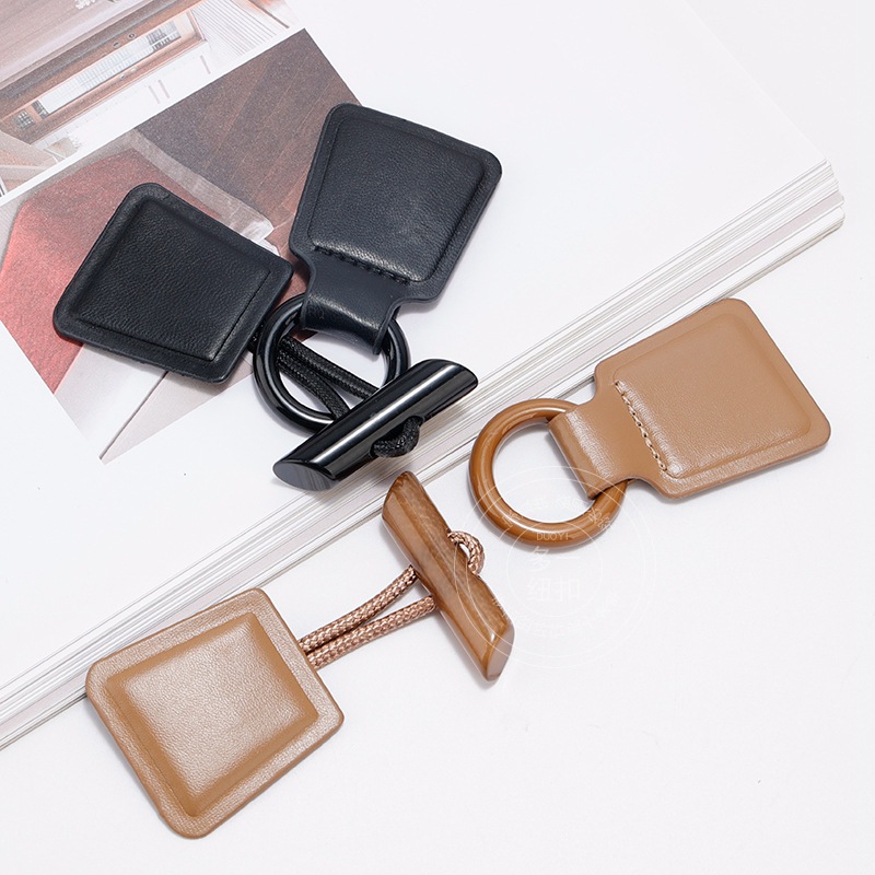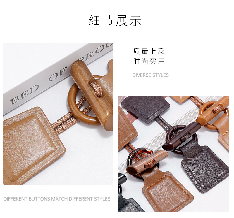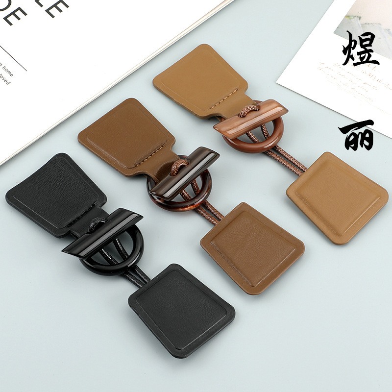 新しい茶色の皮革樹脂のボタンは、コートのコートの毛のコートの正方形のロープのボタンの装飾の手縫いのボタンの卸売りです。