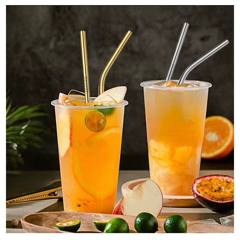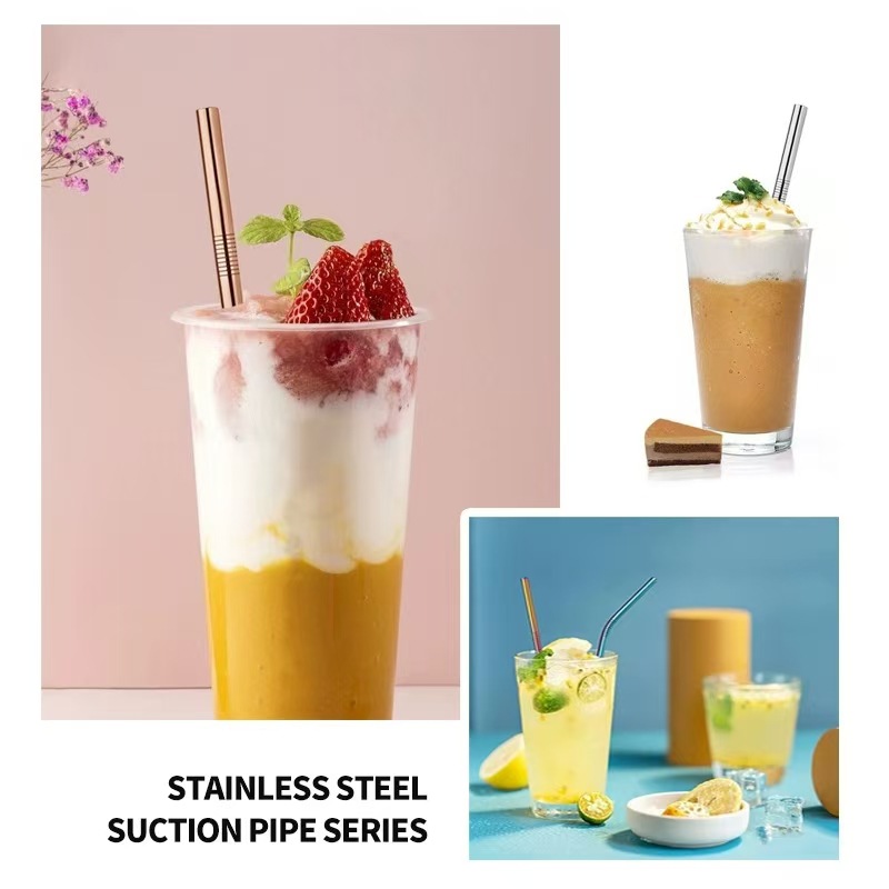 ステンレスストローセットチタンメッキカラーメタル304カラー直管エルボ飲料ステンレスミルクティーストロー