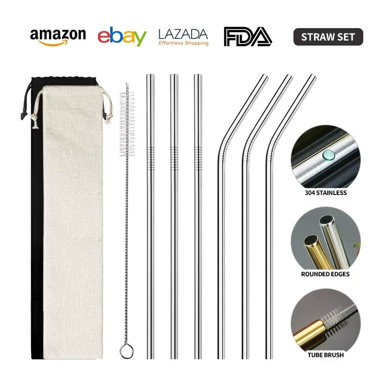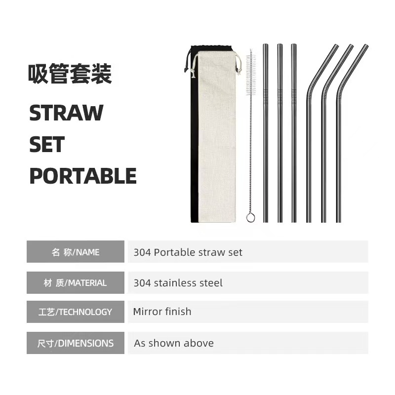 クロスボーダー直売食品級304ステンレスストローセットステンレスカラー金属ストロー