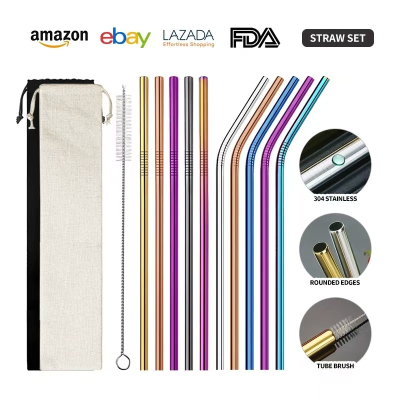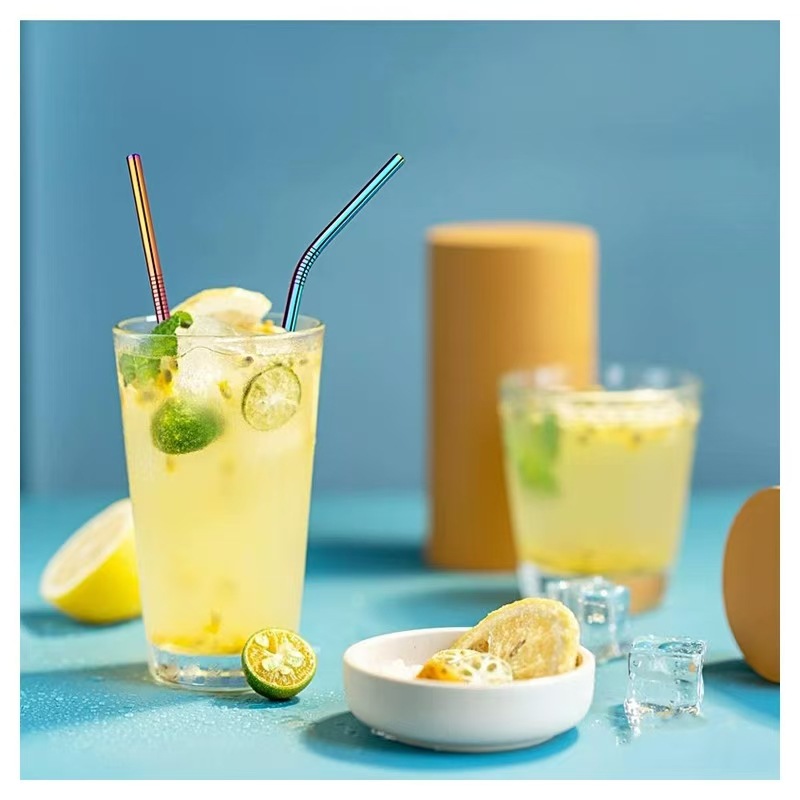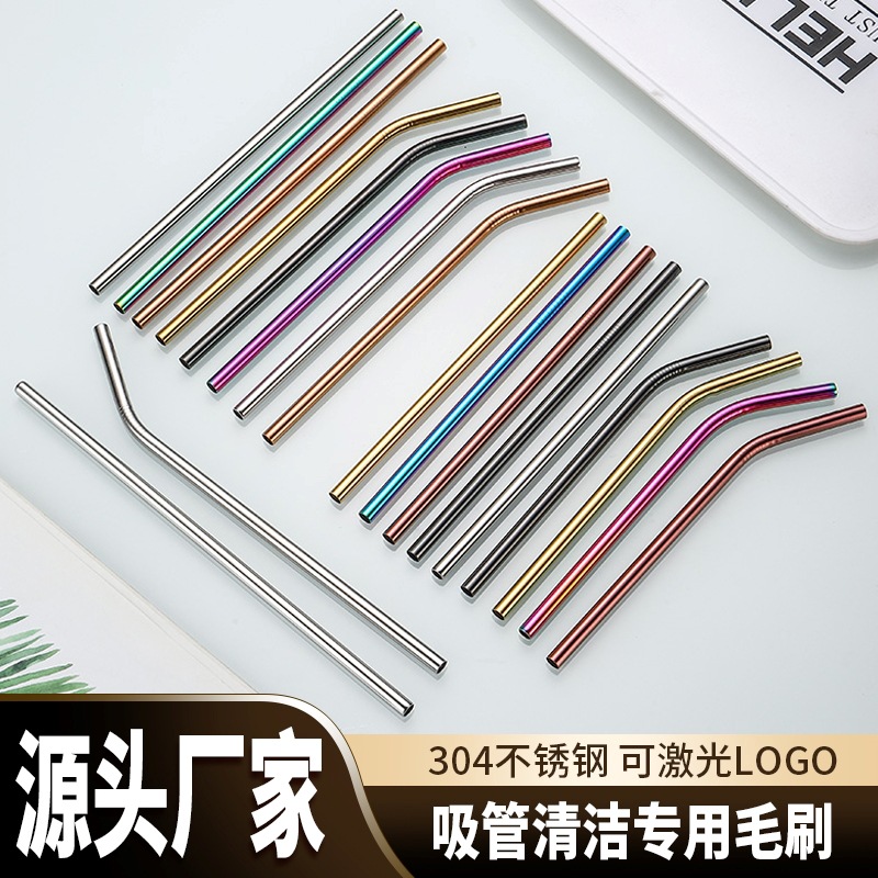 クロスボーダー304ステンレスストローセットクリエイティブ金属カラーチタンメッキミルクティー飲料カクテル直管エルボ