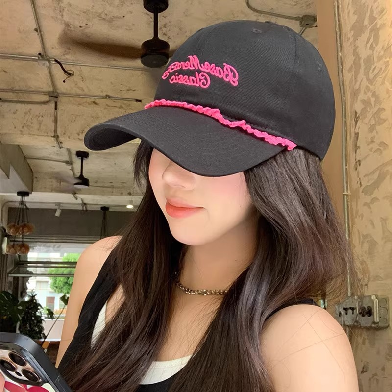 甘くてクールなホットガールスタイルの野球帽、女性用夏の新しい帽子、刺繍文字、大きな頭囲、顔が見える小さなサンバイザー、ひさし付きキャップ