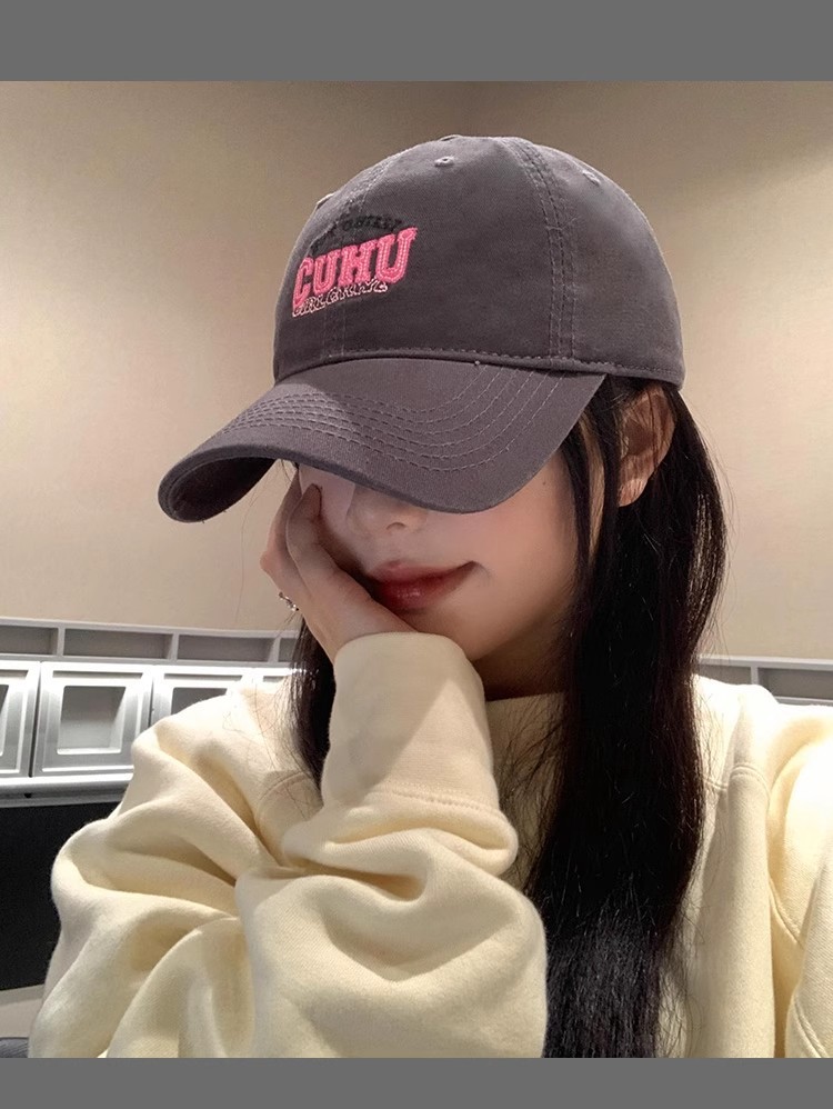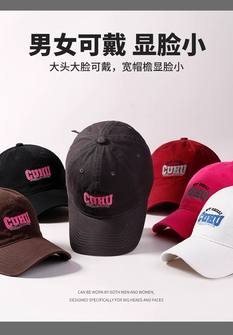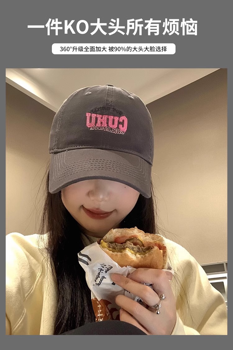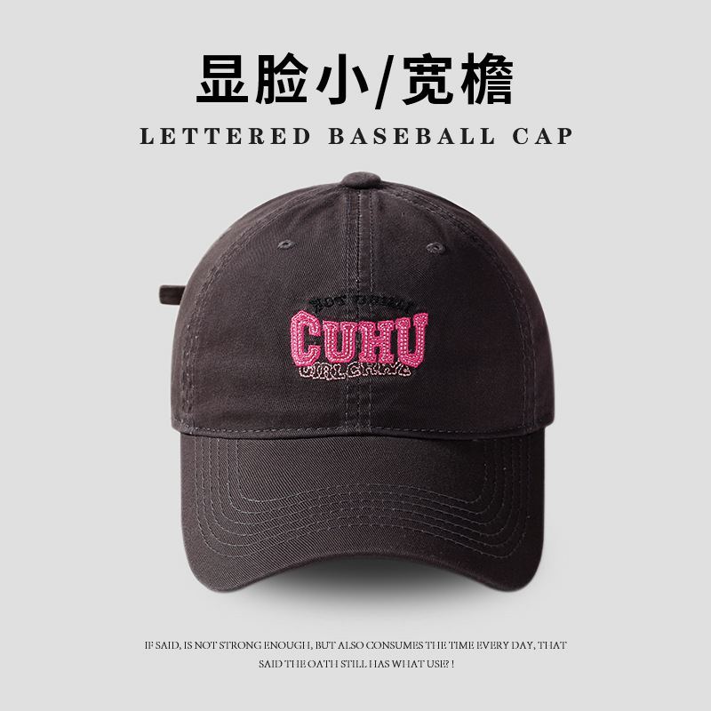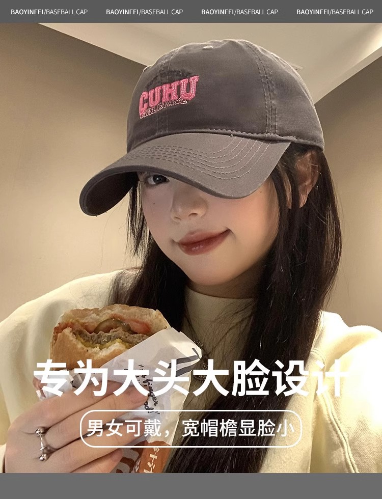 刺繍のアルファベットの野球帽の女性2025の新型の帽子の広いつばの韓国版の大きい頭はアヒルの舌の帽子を囲んで顔の小さい帽子を現します。