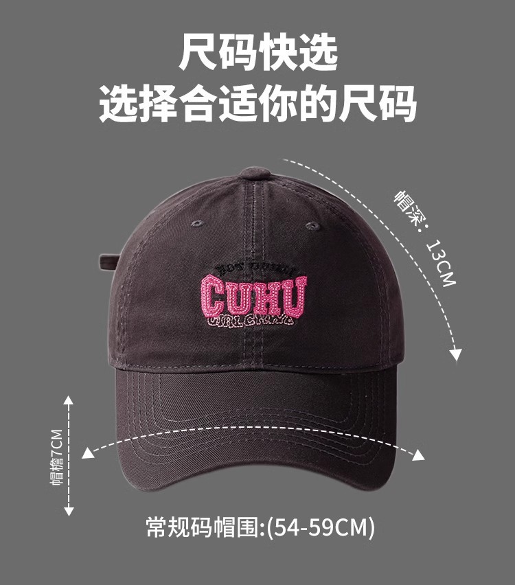 刺绣字母it水洗棉棒球帽女2025新款韩版复古显脸小宽帽檐鸭舌帽男