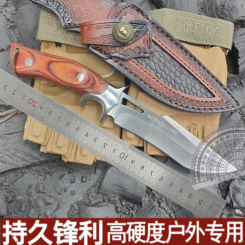 红檀木户外直刀刀片大马士革钢VG10高硬度手工锻打野营登山排障