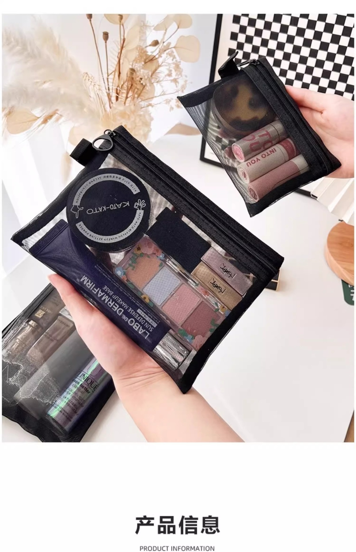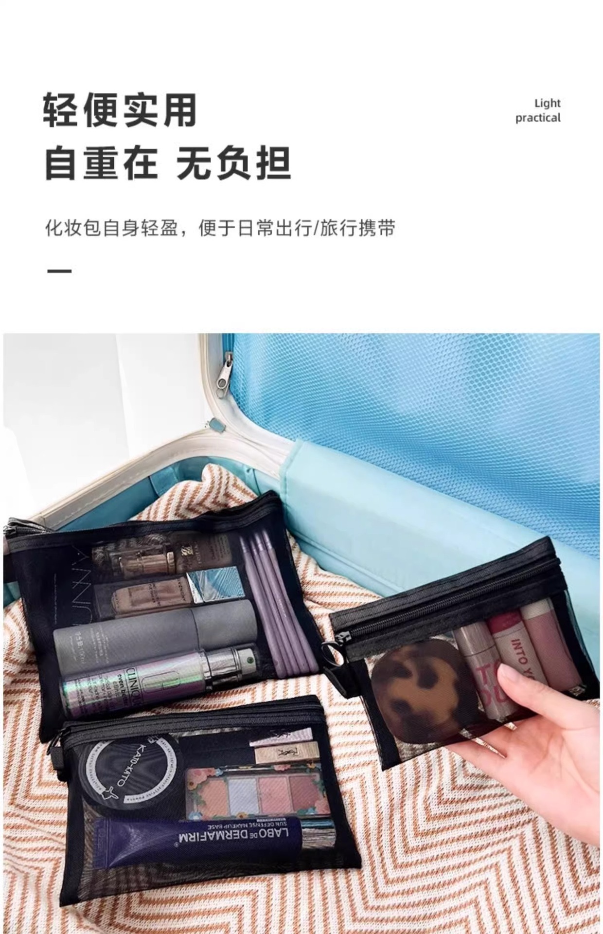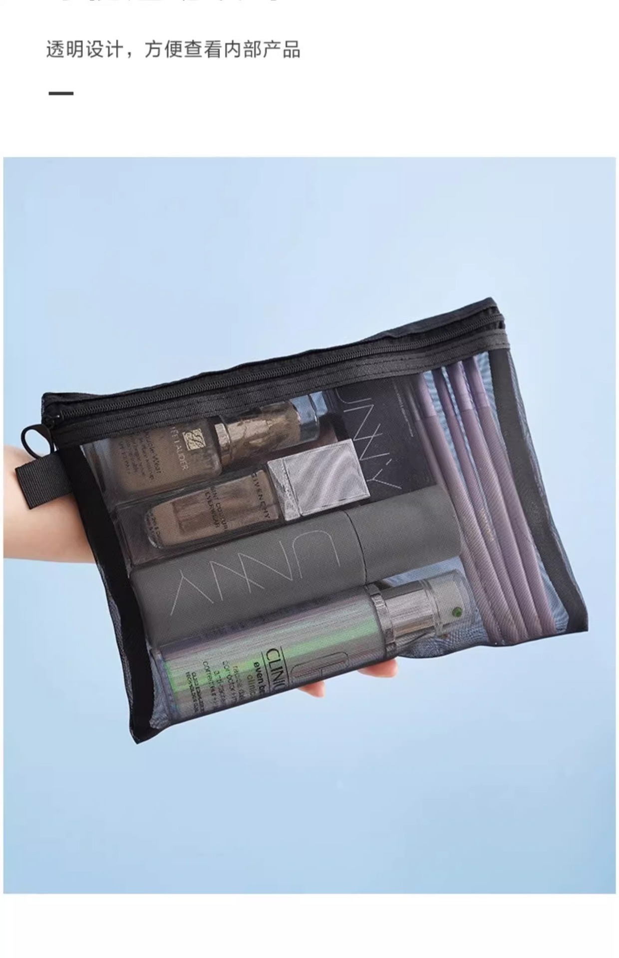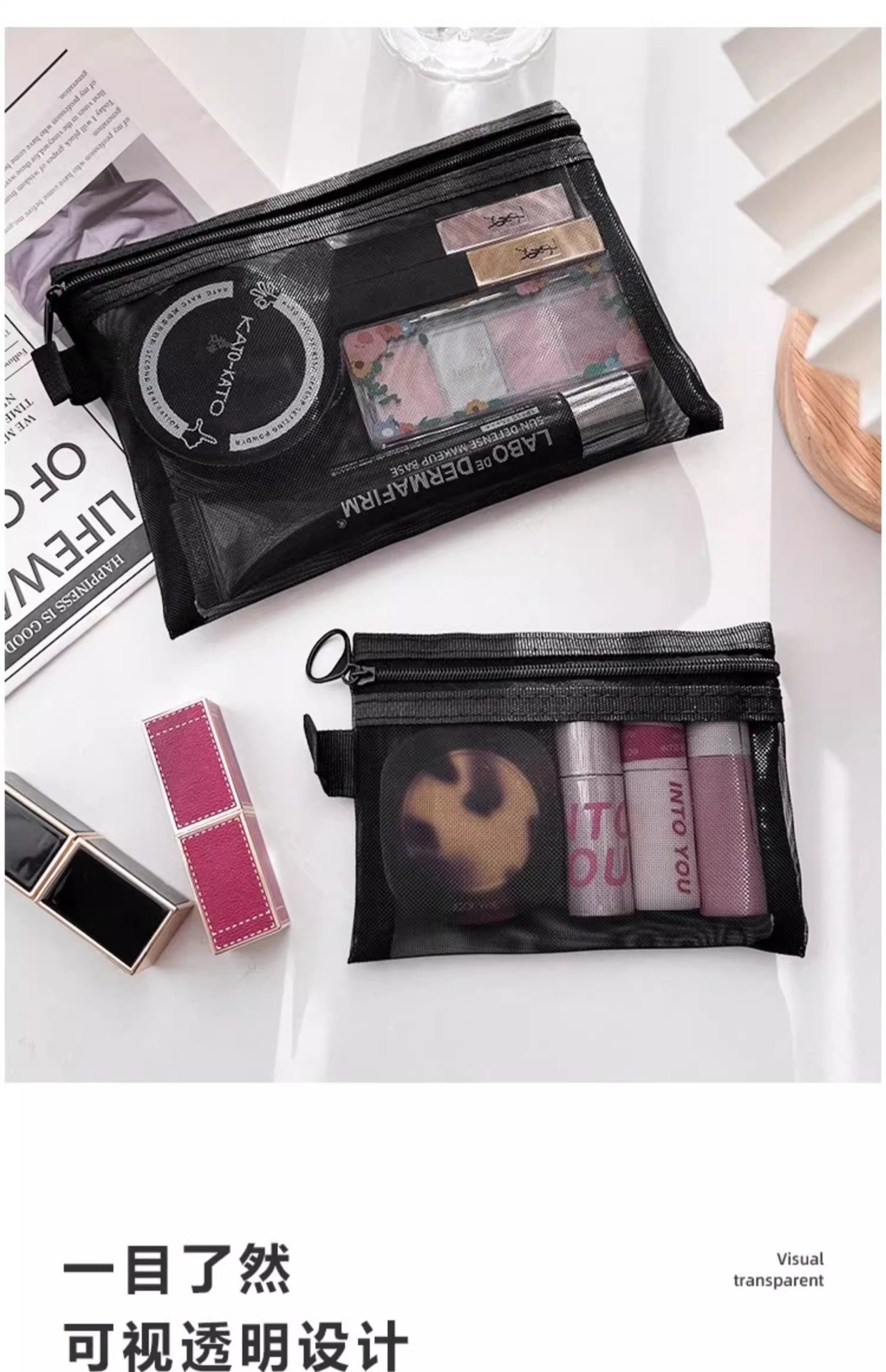 高顔携帯化粧バッグ収納旅行小衆精致洗面バッグ日系口紅透明収納袋網紗バッグ
