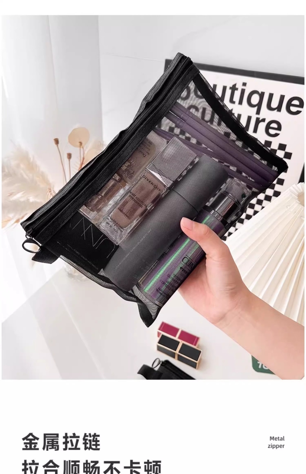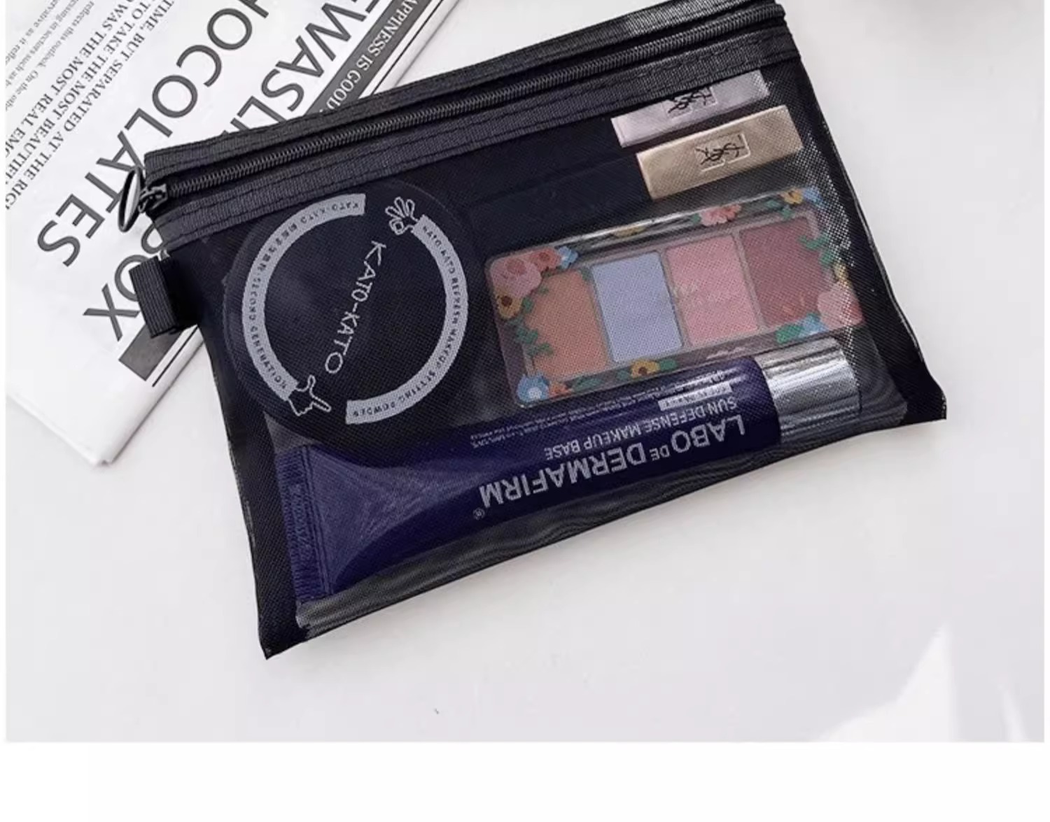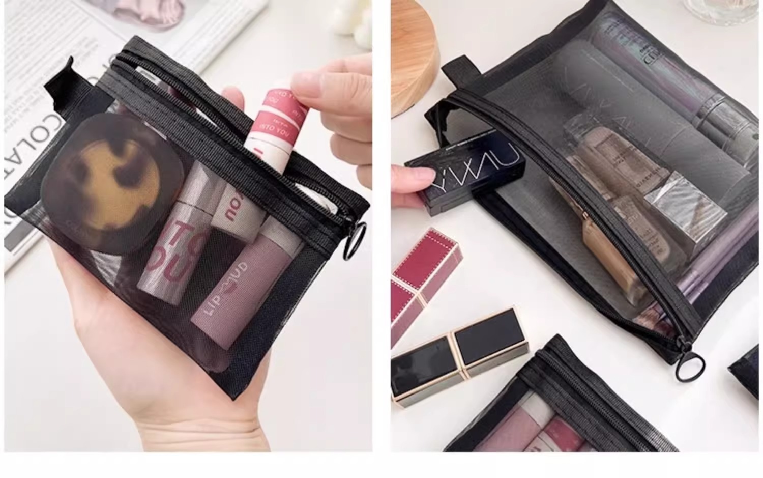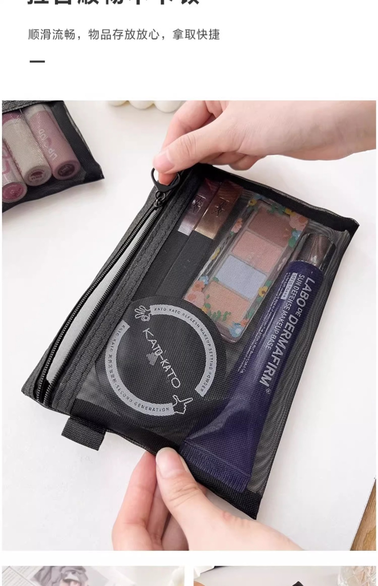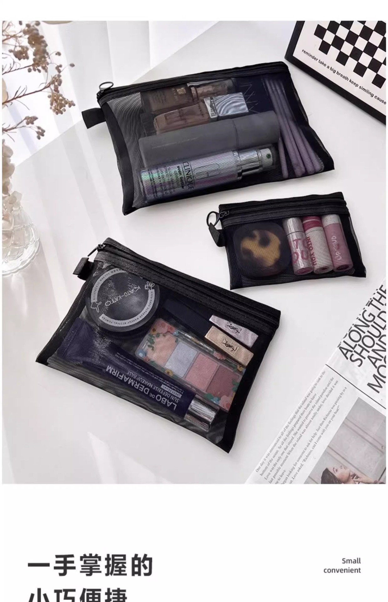 高顔携帯化粧バッグ収納旅行小衆精致洗面バッグ日系口紅透明収納袋網紗バッグ