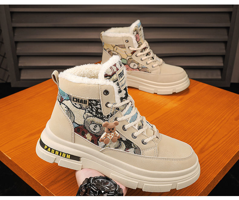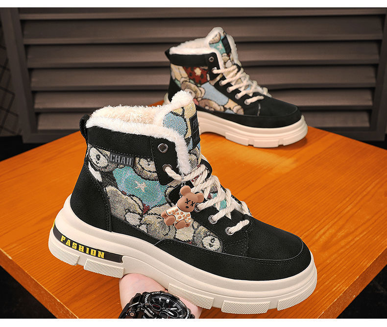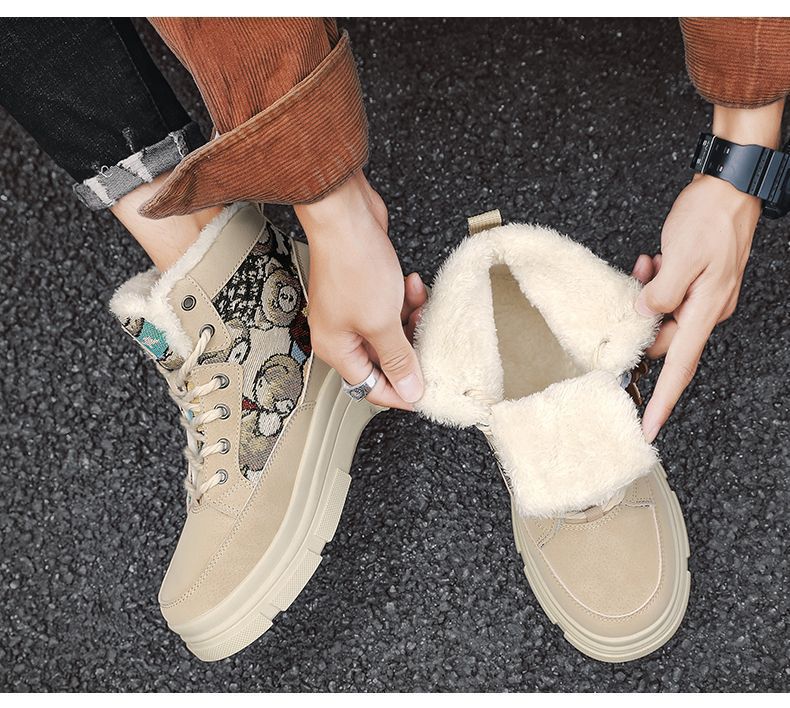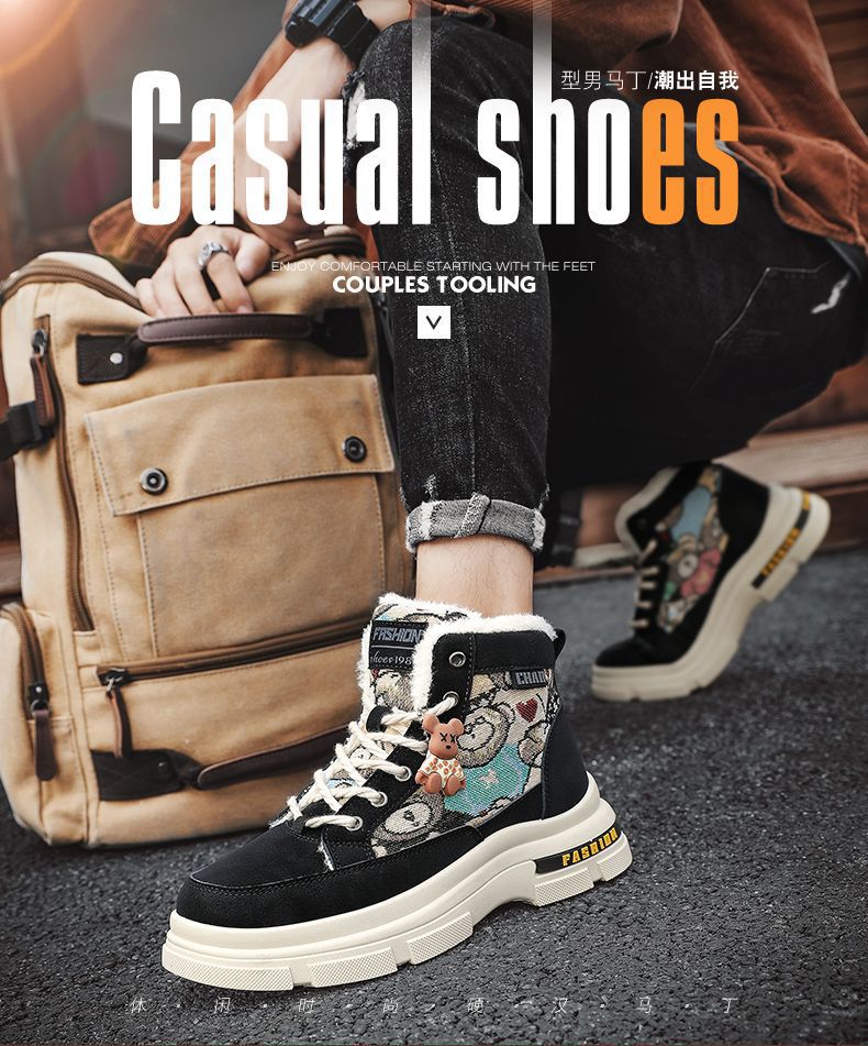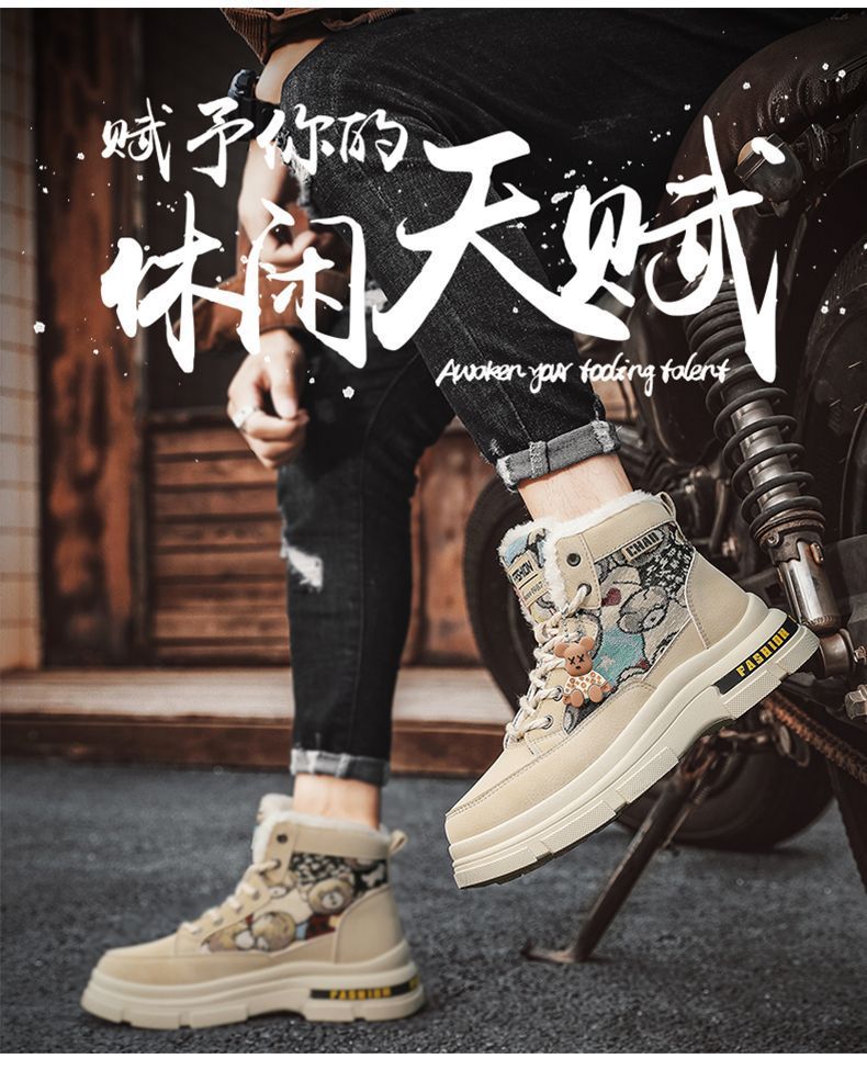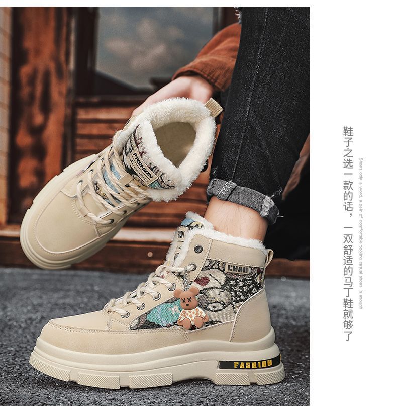 2025冬季加绒马丁靴男鞋潮流百搭厚底加厚保暖棉鞋高帮工装鞋短靴