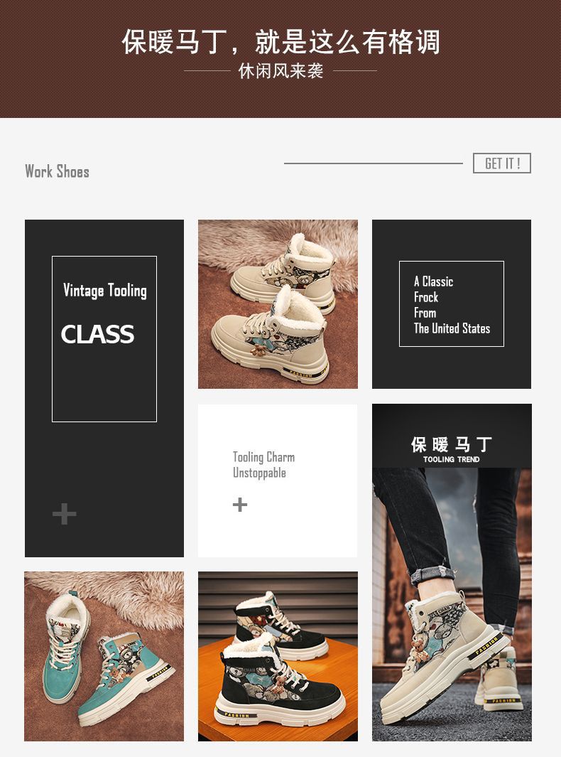 秋のメンズシューズ、ハイカットマーティンブーツ、大型ワークブーツ、スノーブーツ、ミッドカットコットンシューズ、トレンディなメンズブーツ、英国風