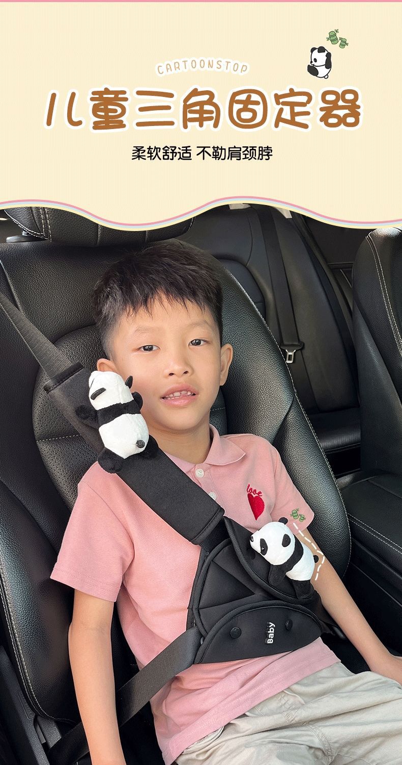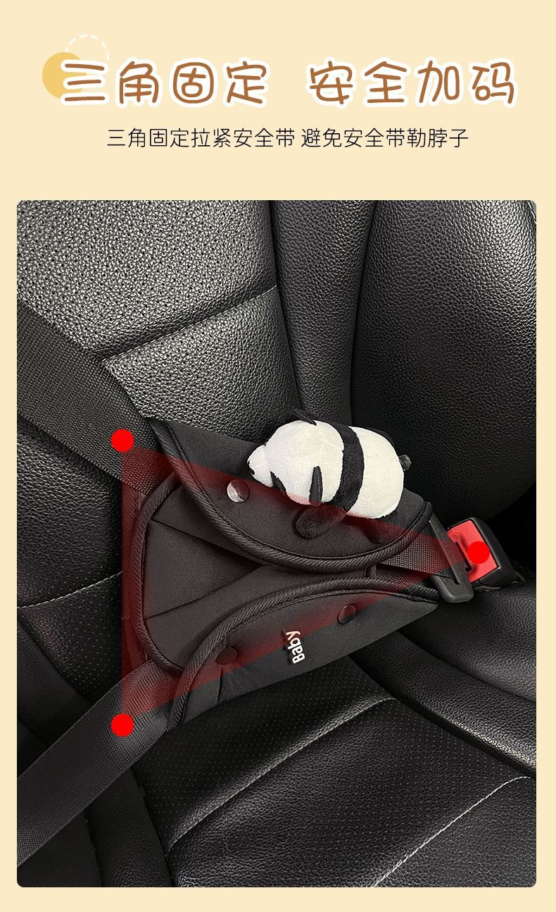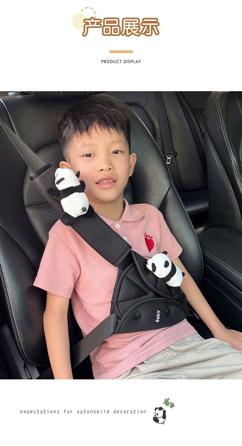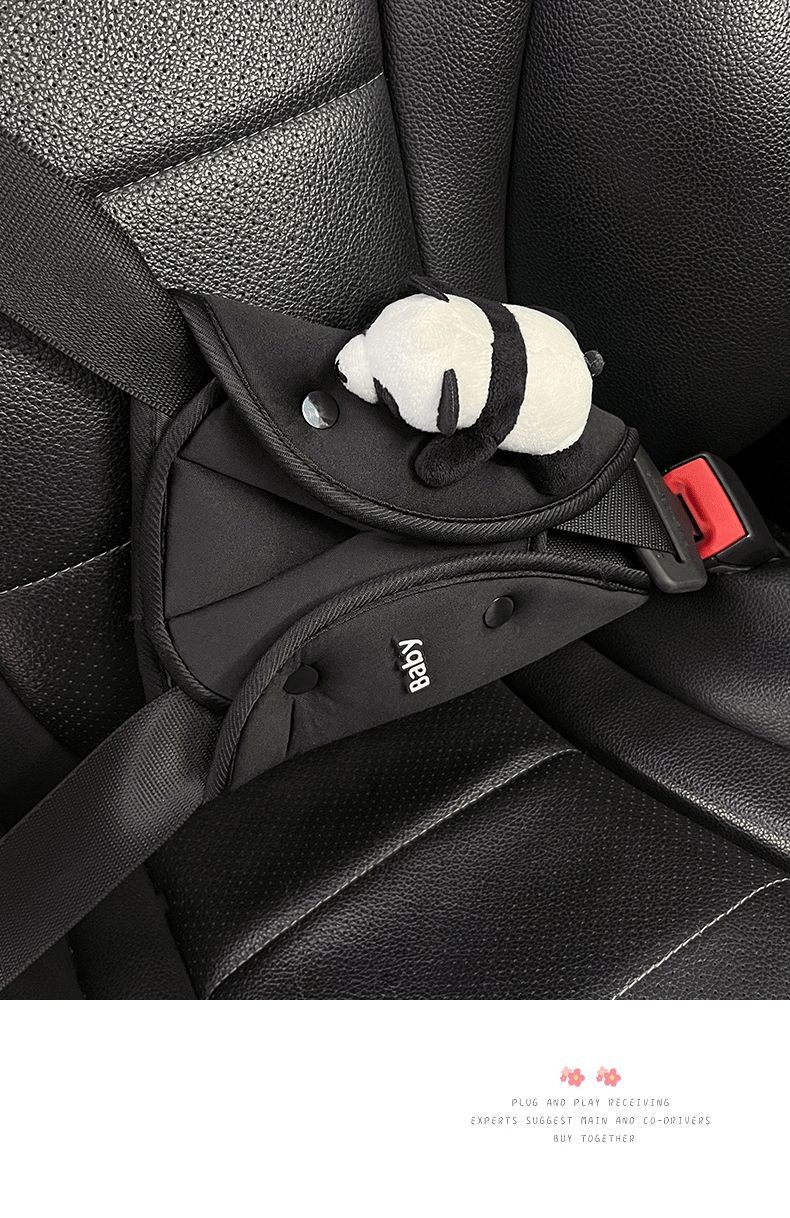 車の子供の安全ベルトの調節の三角の固定器の首のパンダの肩のカバーの車載の保険ベルトの制限器