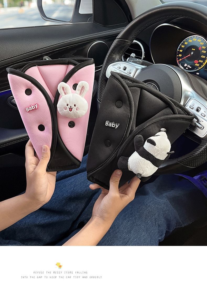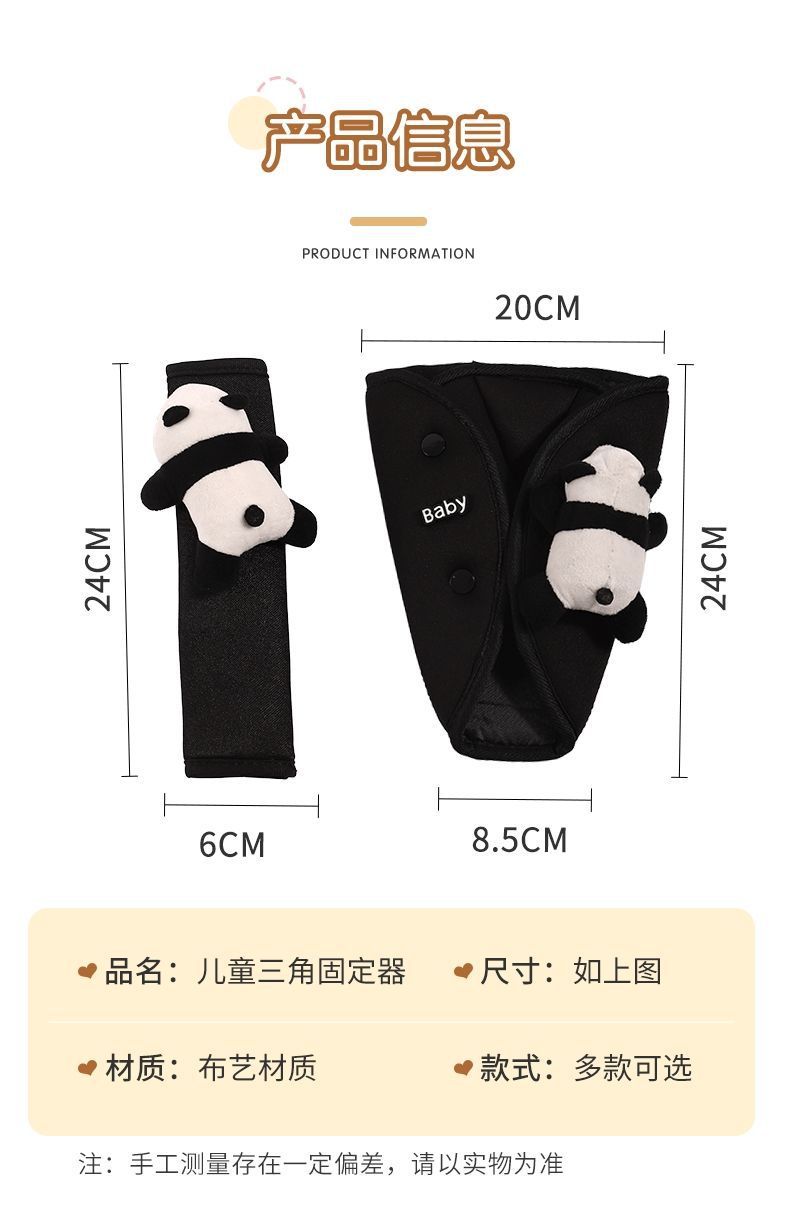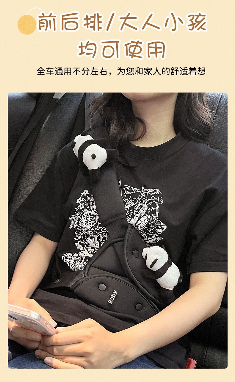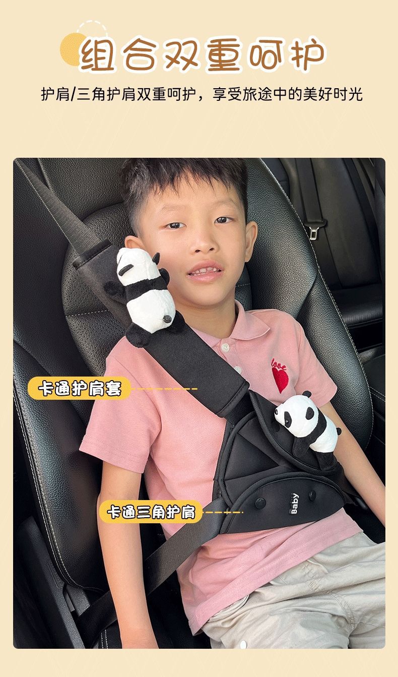 車の子供の安全ベルトの調節の三角の固定器の首のパンダの肩のカバーの車載の保険ベルトの制限器
