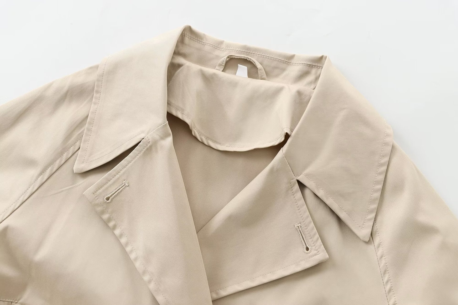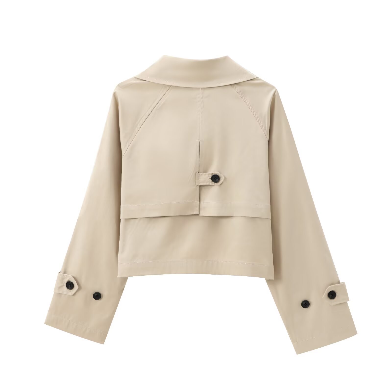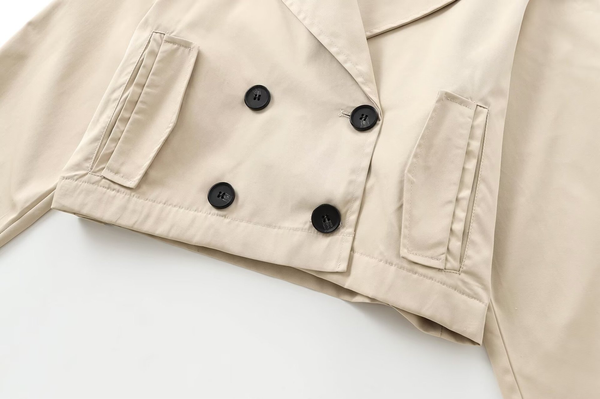 ZA速卖通爆款跨境欧美风女装双襟短款风衣夹克外套女