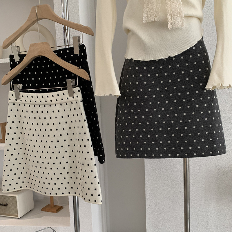 欧玛莱 波点提花针织松紧腰半裙百搭显瘦高腰A字半身裙短裙女5672