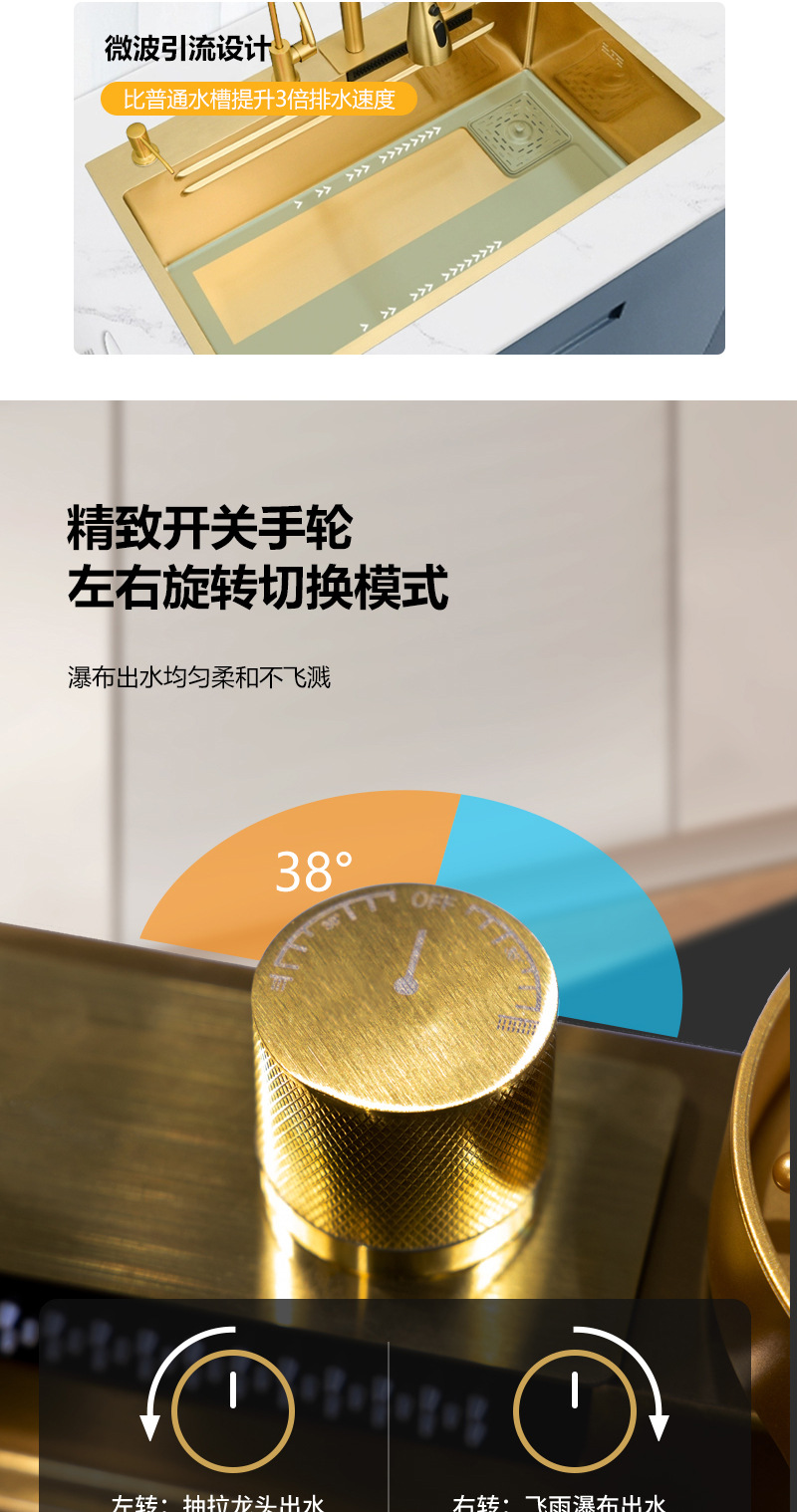 金色クジラ水槽一体大単槽液晶ディスプレイ銅蛇口キッチンステンレス304野菜鉢