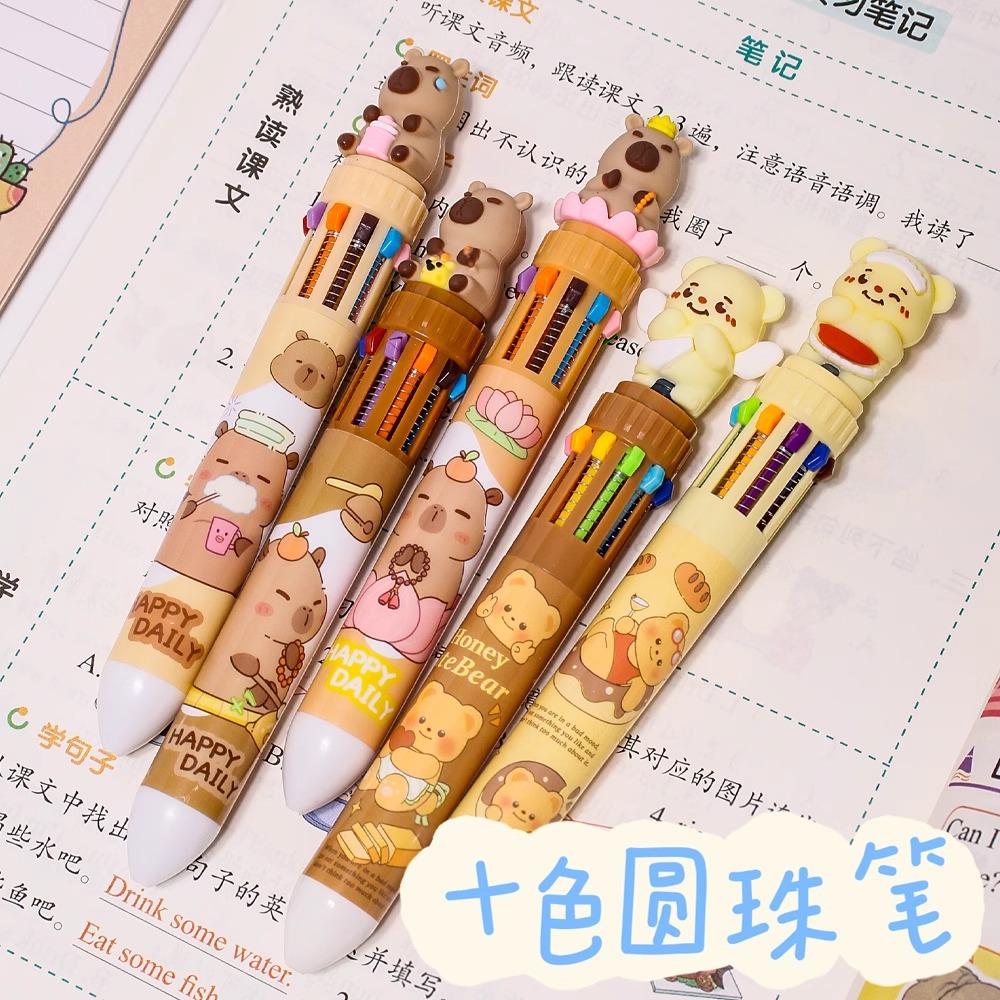 カピバラ 10色ボールペン 人形ヘッド 多機能 学生専用 プレス マルチカラー ライティング かわいいボールペン