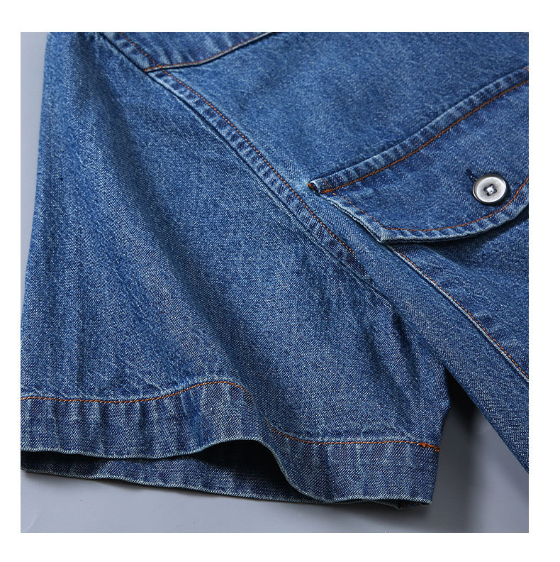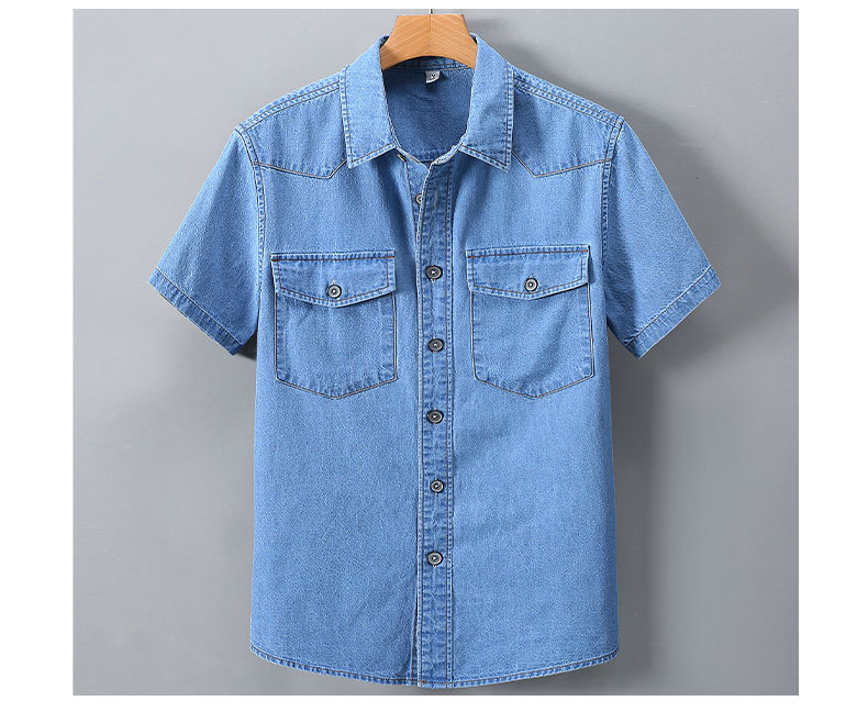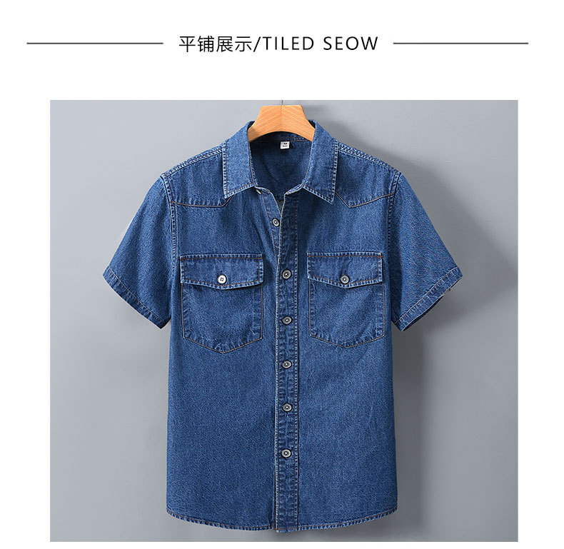 83072デニムシャツ男性の夏の大きいサイズの薄い綿の半袖のコートのスリムな襟の半袖の工装のシャツ