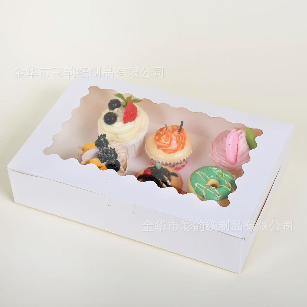 亚马逊热销透明开窗加厚纸杯蛋糕包装盒马芬盒一次性烘焙打包盒