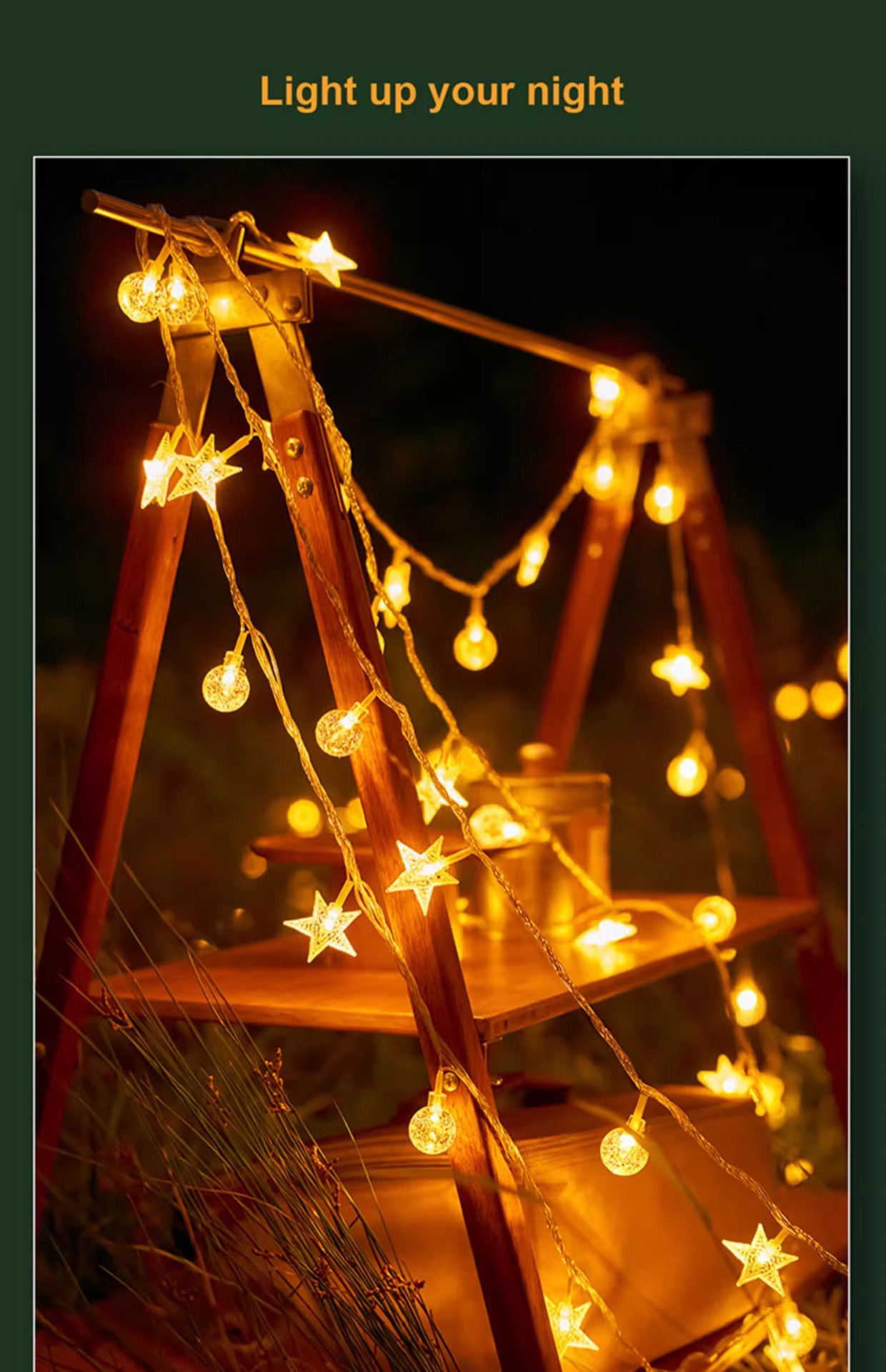 屋外防水LEDライトストリング、雰囲気のあるカラフルなライト、星空、新年、ホリデー、クリスマス、結婚式、ソーラーライトストリング、庭園用